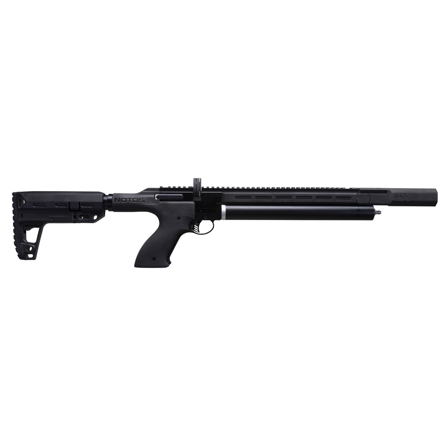One super popular air gun just got better. Meet the second generation of the Notos Pre-Charged Pneumatic carbine. If you know the Notos you know that it’s not truly a rifle. With its compact sizing and removable stock the Notos can easily be converted to pistol use if so desired. New for the Notos Gen 2 is a redesigned cocking lever redesigned 15 shot magazine longer barrel redesigned SilencAir device and a larger higher pressure onboard tank. Umarex was able to make these changes without altering with the attributes that made the original Notos such a huge success in the beginning. The Notos is still super lightweight compact accurate and customizable. We have just addressed a few of the issues that our customers spoke up about to make a more refined better performing Notos. The Notos Gen 2 is still a precisely accurate .22 caliber pellet carbine with side lever cocking and multishot auto-indexing magazine that shoots well over 800 FPS with an 11.9 grain pellet. The Notos Gen 2 can easily be converted from a carbine to a pistol by installing the Notos Pistol Grip set (sold separately). The Notos Gen 2 can also accomodate any optic the shooter prefers via the generous length of Picatinny rail. Additionally other accessories such as bipods or lights can be attached via the M-LOK slots located on either side of the hand guard. - .22 Caliber - 15-Shot Standard Magazine Capacity - Re-Designed Cocking Lever - Re-Designed Magazine - 118cc Tank with 3625 PSI Max Fill Pressure - 13.5 Inch / 343mm Barrel - SilencAir Noise Device Attached - 1 Magazine and 1 Single Shot Tray Included - Picatinny Scope Rail - 820 FPS with 15.89 gr Pellet - 22 Joules with 15.89 gr Pellet - Adjustable Length Stock - Convertible to a Pistol ( with part 2254850) - Foster Quick Connect Fill Port - Compatible with Fiber-Optic Open Sights Set ( Part 2254851)