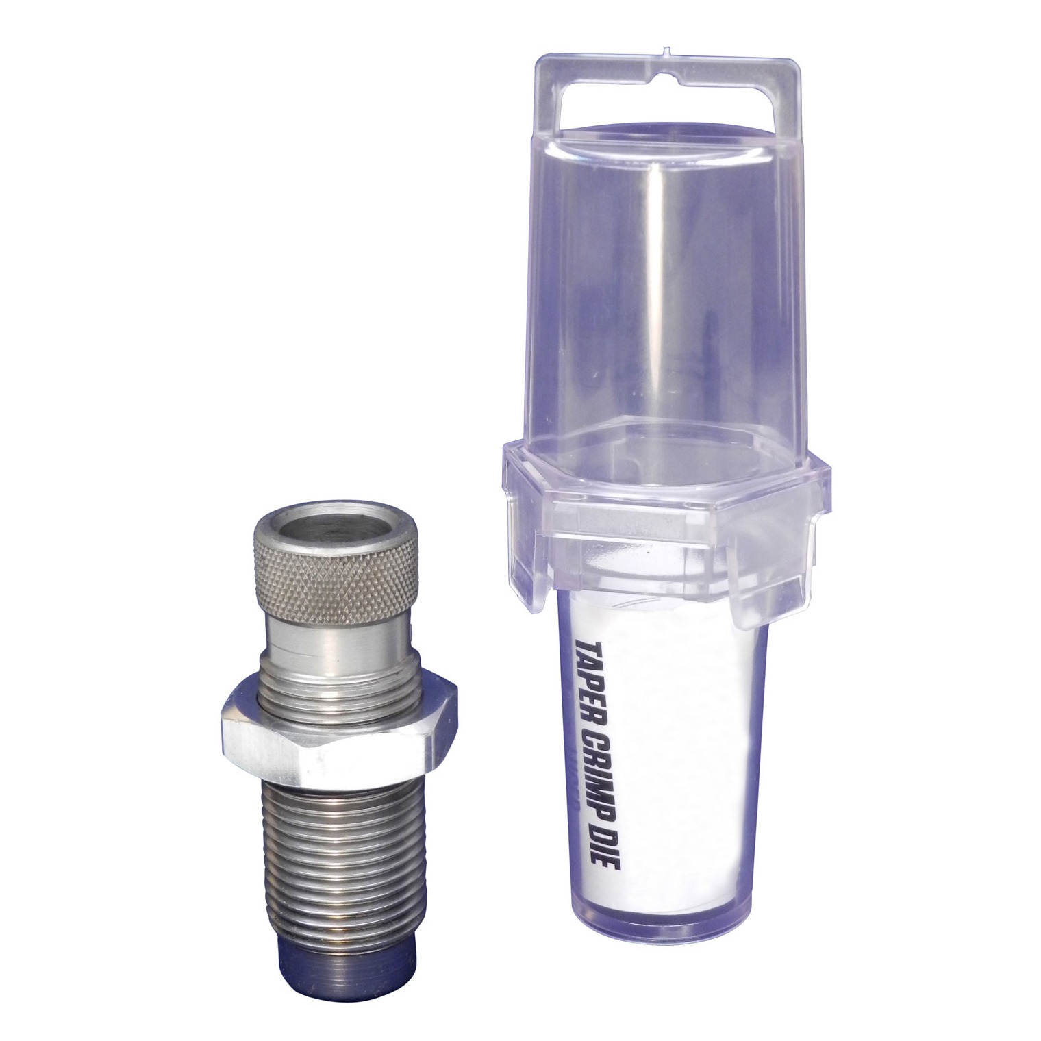 Lee 9MM LUGER/38 SUPER/38 ACP/380 AUTO Taper Crimp Die, overcomes crimp problems caused by poor die design. Offers little or no advantage when used with 1986 or newer Lee Dies as the crimp angle is already a modified taper crimp. Jacketed bullets must have a crimp groove.