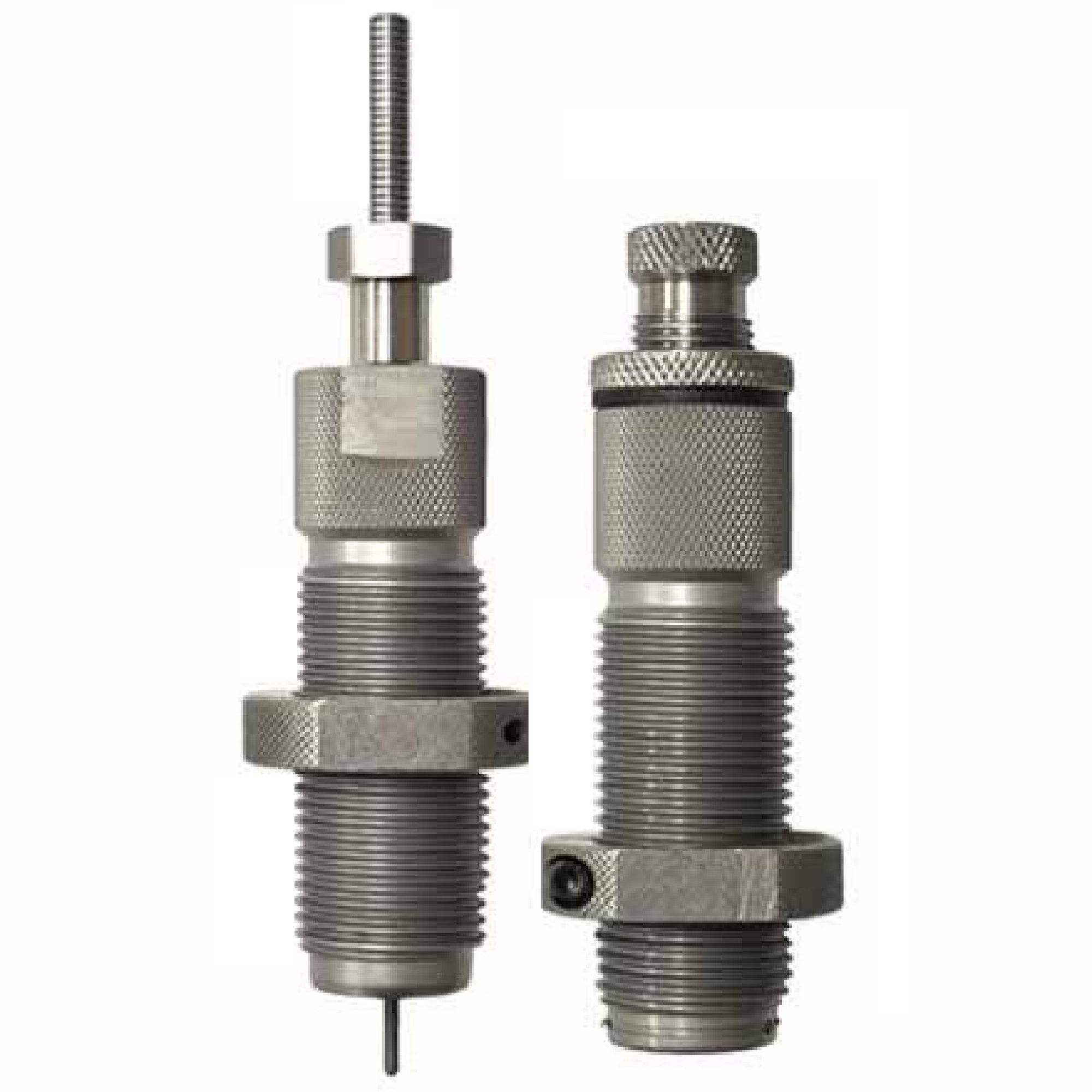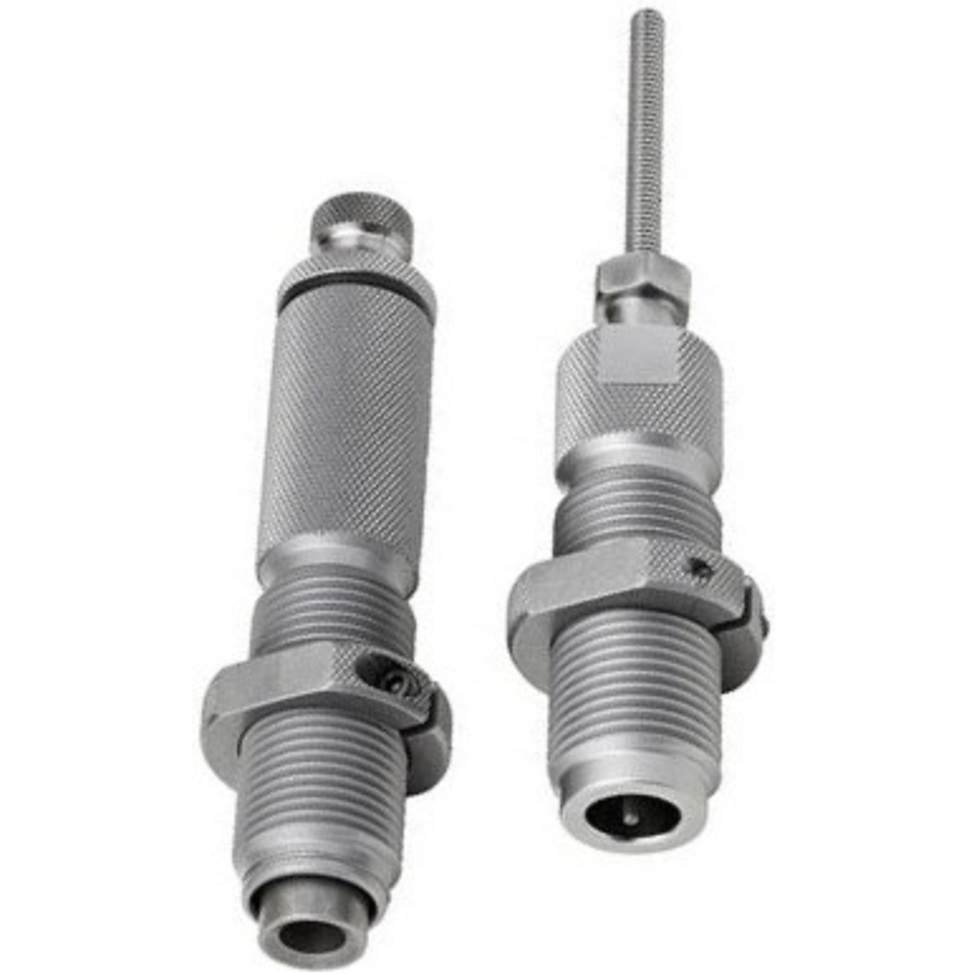 This die set includes Custom Grade New Dimension (CGND) Full Length Sizer and a CGND Seating Die. The Full Length Die now features a Zip Spindle with a series of light threads cut on the spindle and spindle collet to eliminate slippage and make it easier to tighten the spindle lock when making adjustments. Improve bullet seating and accuracy with the CGND Seating Die that applies a roll crimp. Die set comes packaged in a plastic storage box with two Sure-Loc rings. Shell holder is sold separately.