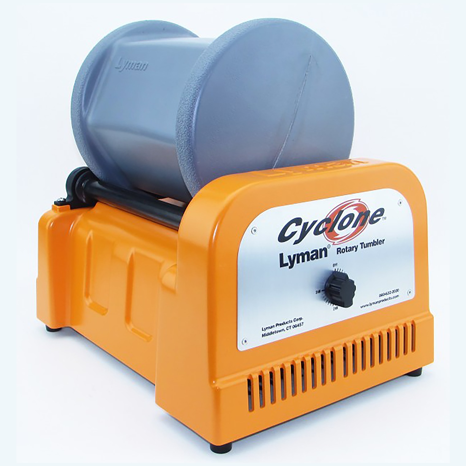The Cyclone Rotary Tumbler takes brass cleaning to a whole new level. The rotary tumbling action combined with the stainless steel media and liquid cleaning solution gets brass cleaner on the outside than vibratory tumbling methods. The small stainless pins easily slip inside cases and into primer pockets to provide superior cleaning action in these areas. Something that vibratory tumbler will not do! The large capacity drum holds up to 1000 pieces of .223 brass and features a rubber lining to protect brass and greatly reduce noise during operation. A built in timer in the base can be set to run from 0 to 3 hours, shutting off automatically. The drum features a large end cap to allow easy loading and unloading. In addition, the tumbler comes with a pair of unique sifter pans which makes separating pins from the cases a breeze! Simply empty the tumbler into the stacked pans. The first pan catches the brass, while the second fine screen pan catches the pins. Five pounds of stainless media pins and a sample packet of Brass Cleaning Solution are also included.