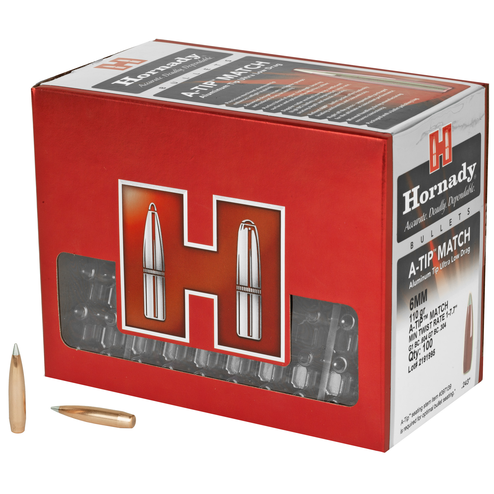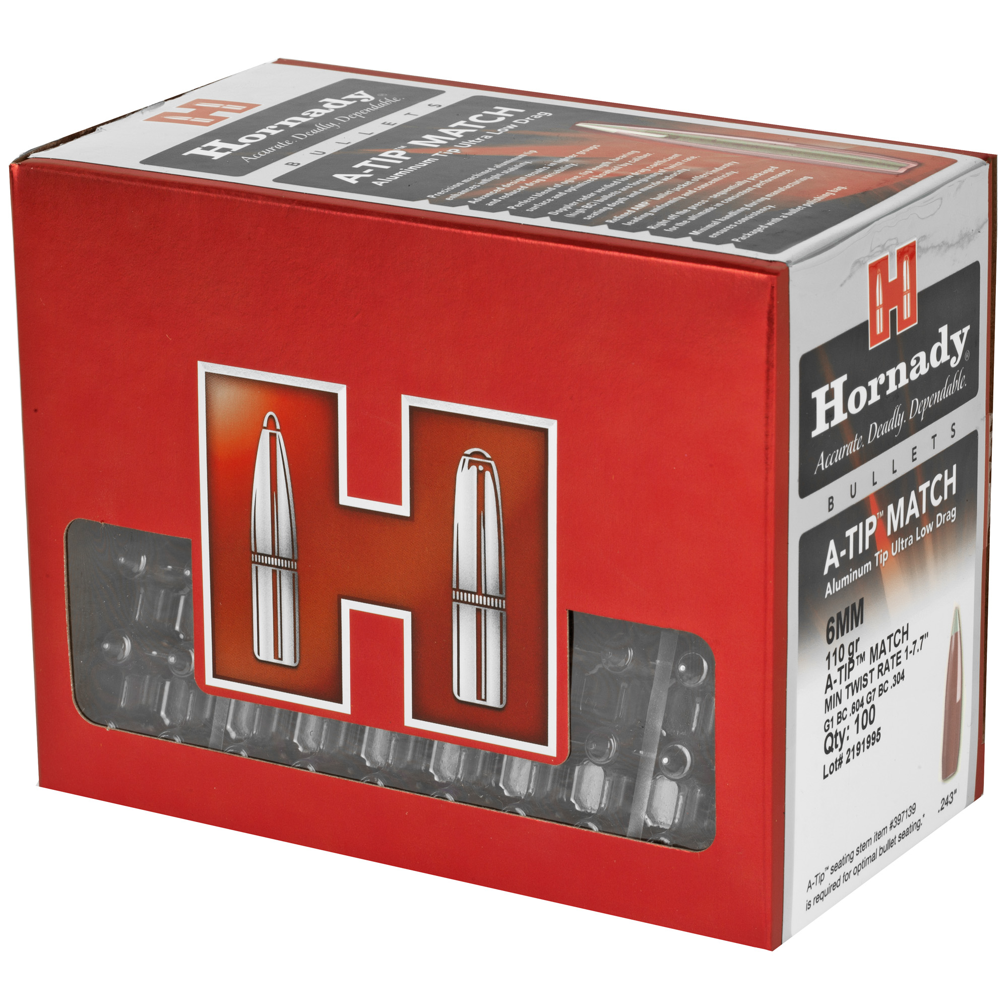 Hornady 24531 A-Tip Match 6mm .243 110 gr A Tip Match 100 Per Box/ 10 Case