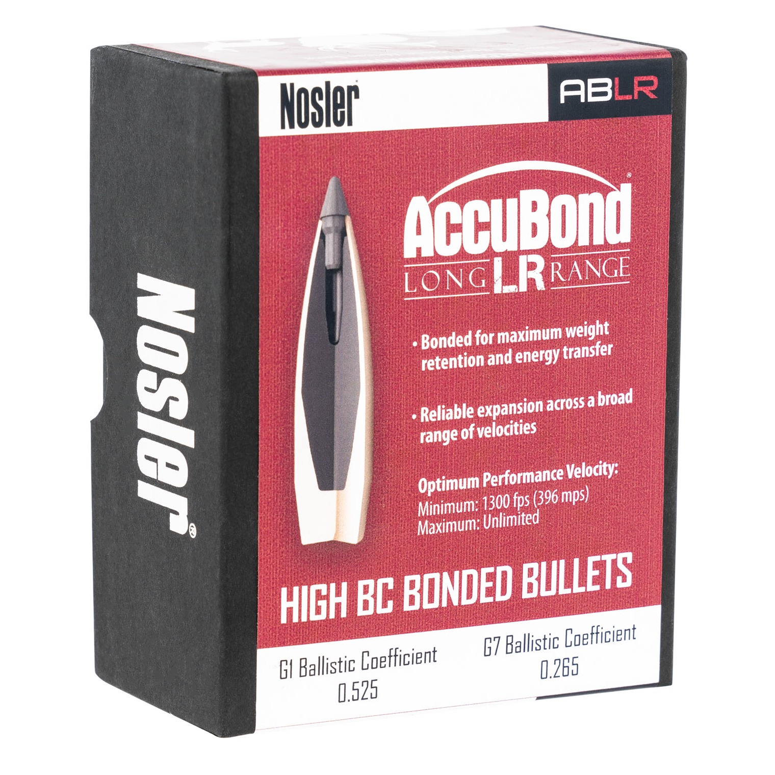 The AccuBond-Long Range bullet line was developed in response to the escalating demand from long-range hunters who were asking for a hunting bullet that could keep up with today’s level of high-grade optics and ultra-high velocity cartridges in order to stretch practical shooting yardages past 1,000 yards; yet still perform on big-game animals. In order to accommodate these extreme parameters, the AccuBond-LR bullet was designed to have a minimum impact velocity of 1300 fps in order to reliably expand or mushroom at those much longer distances, compared to the 1800 fps minimum impact velocity of all other Nosler hunting bullets. Because the lead core is bonded to the copper jacket, the AccuBond-LR bullet will hold up to extreme velocities. To further assist performance at such a wide range of impact velocities, the copper jacket is tapered, meaning it is thin at the nose, becoming much thicker towards the boat-tail base.