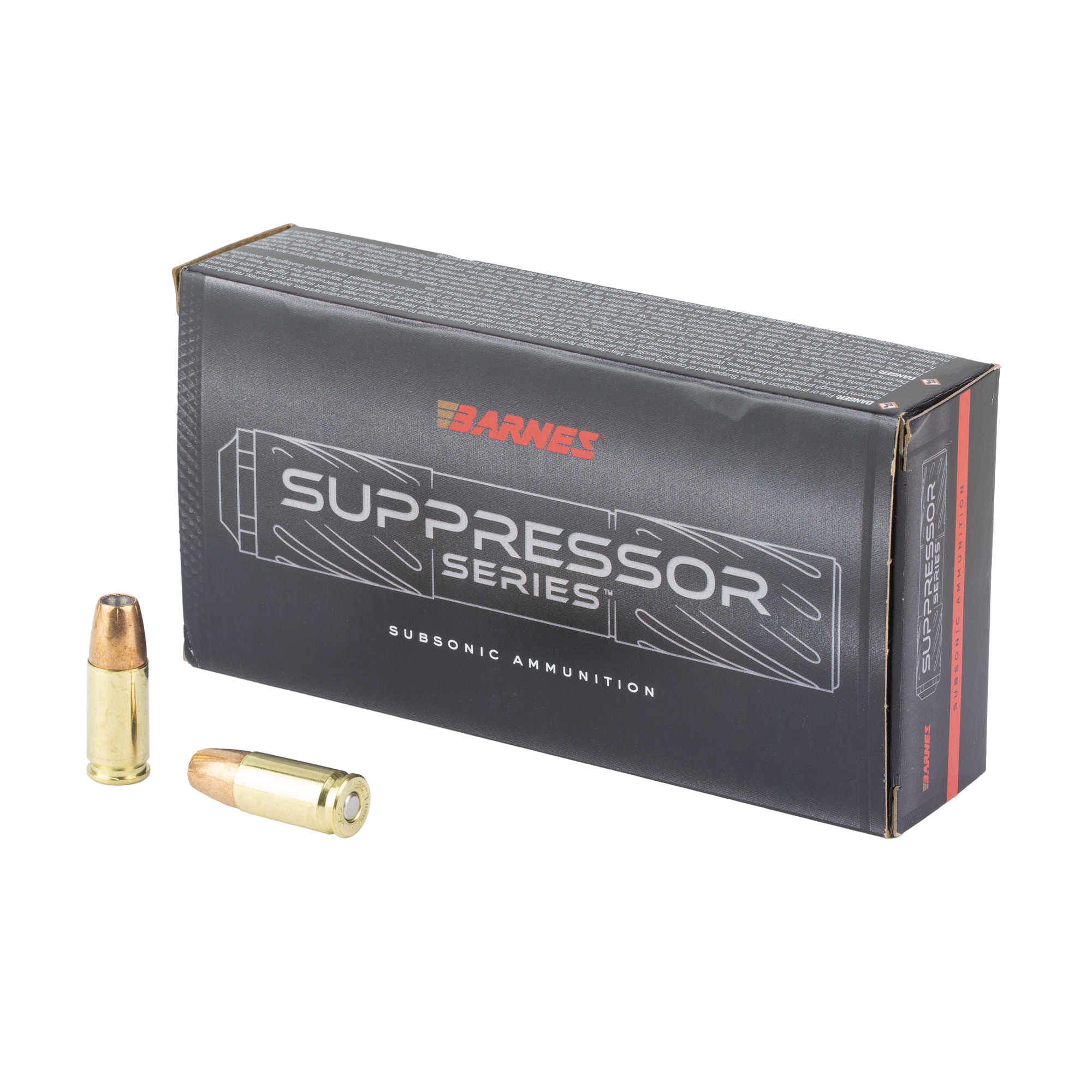 SUPPRESSOR SERIES is a purpose-built subsonic ammunition line optimized for suppressor use featuring premium Sierra projectiles loaded to Barnes’ exacting standards. Our subsonic loads utilize clean-burning propellants to reduce gas blowback improve cycling in semi-auto platforms and deliver noticeably quieter shots through suppressor-ready firearms. - Product Line Suppressor Series - Cartridge 9mm Luger - Bullet Weight (Grains) 147 - Ballistic Coefficient (G1) 0.157 - Purpose Match/Target - Rounds Per Box 20 - Pursuit Target - Bullet Material Jacketed Lead Core