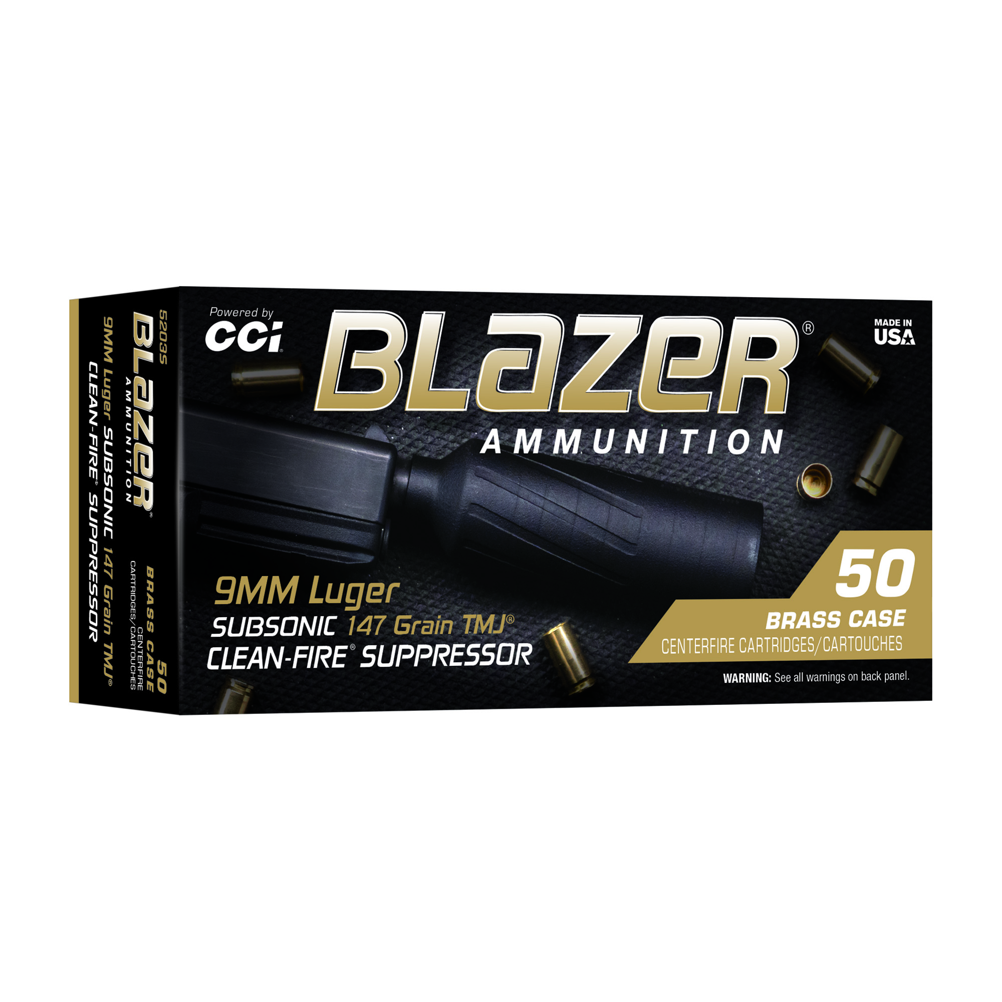 CCI Ammunition, Blazer, 9MM, 147 Grain, Subsonic, Total Metal Jacket, Clean-Fire for Suppressor Use, 50 Rounds per Box