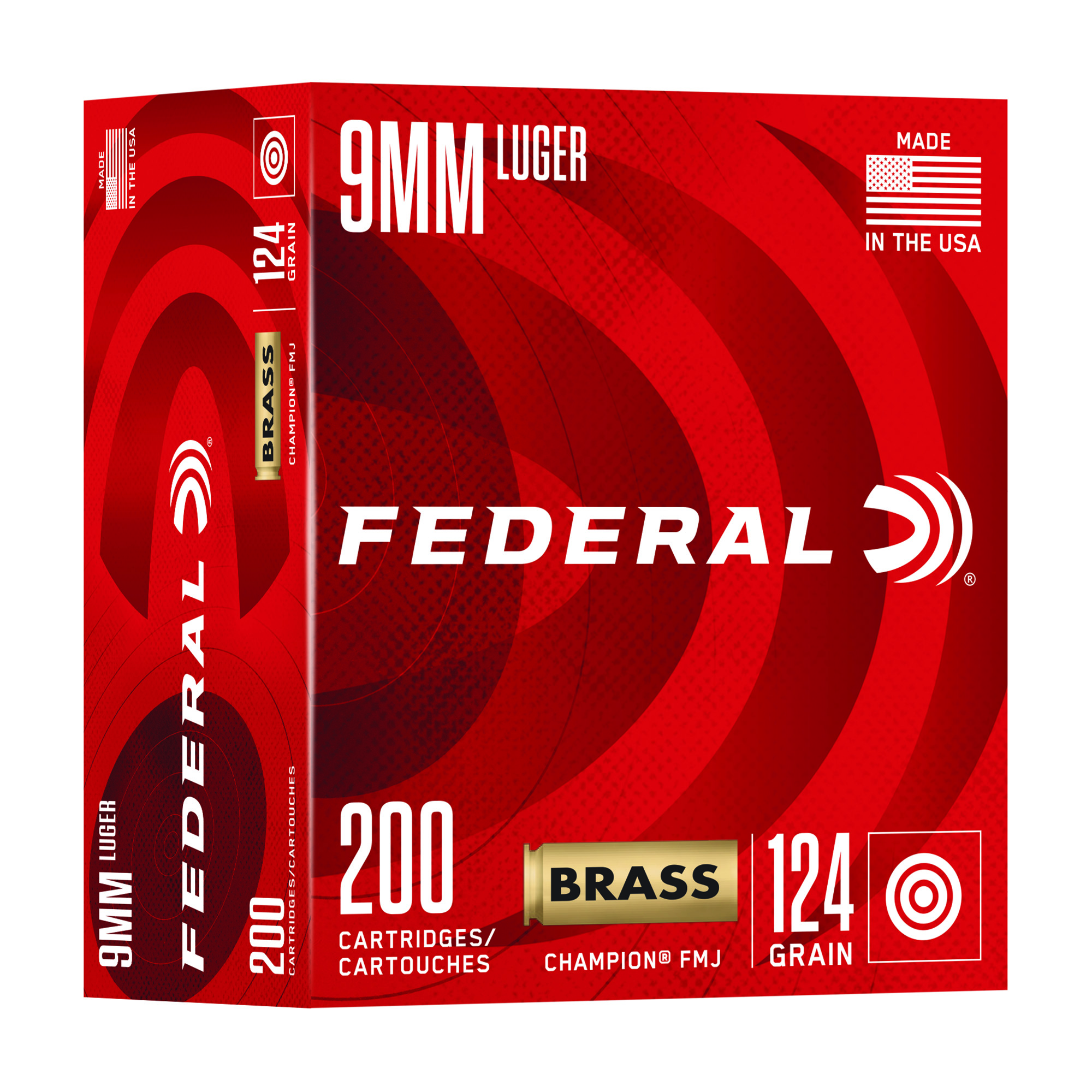 Federal, Champion, 9MM, 124 Grain, Full Metal Jacket, 200 Rounds per Box