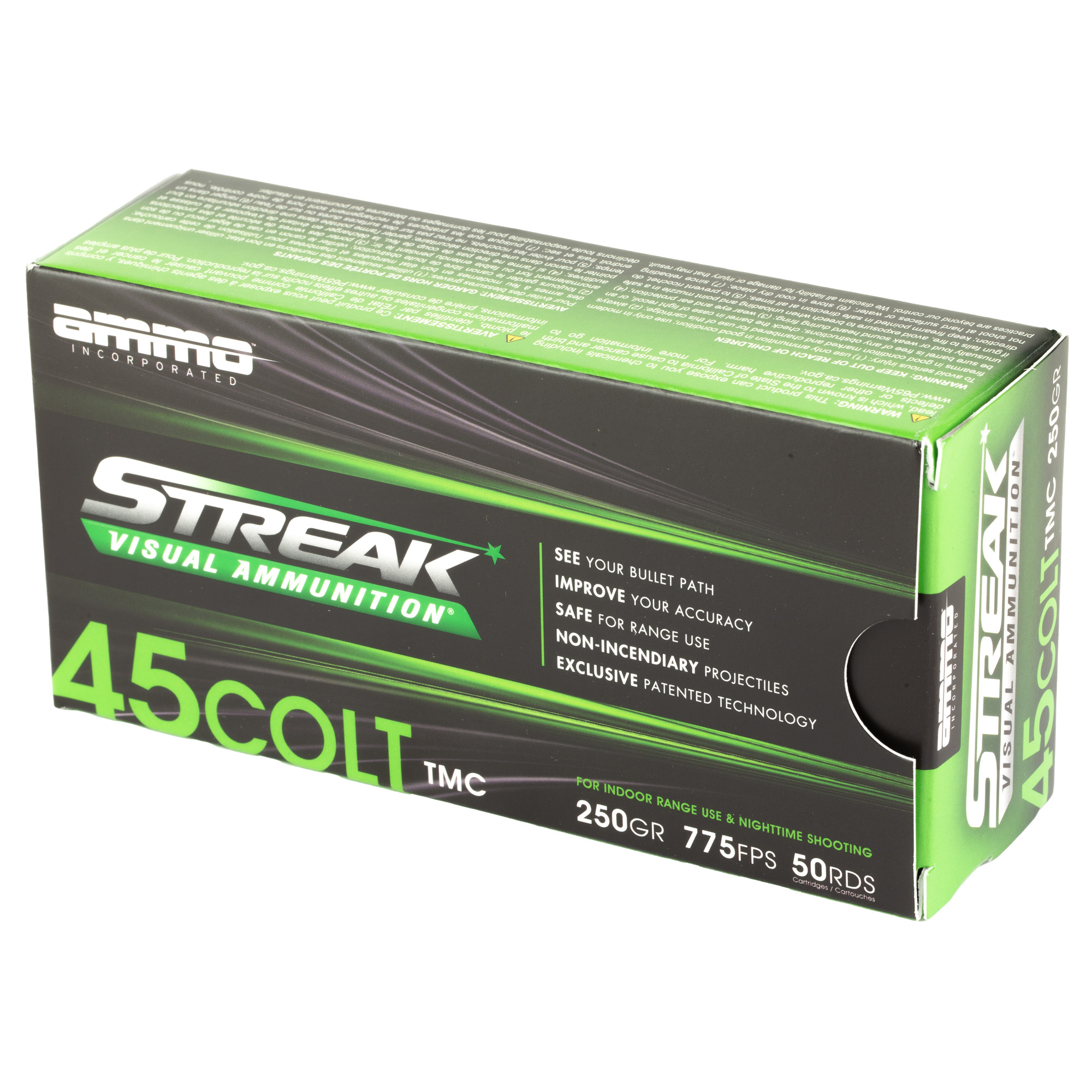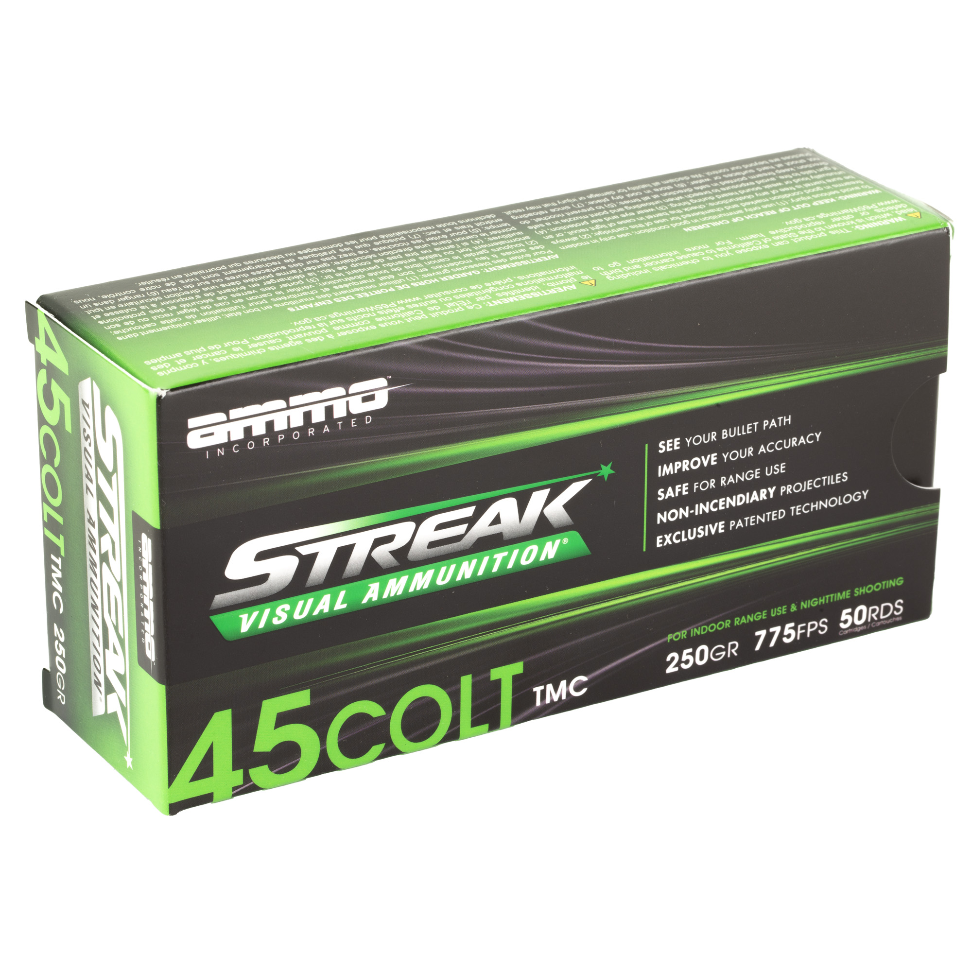 STREAKs allows the shooter to visually see the projectiles path toward its target. STREAK rounds are nonincendiary. They do not generate heat so they are safe to use in environments where tracers are prohibited and can become a serious fire hazard. The results are game-changing in many aspects for the consumer, law enforcement, and military. For indoor range use and low light shooting.