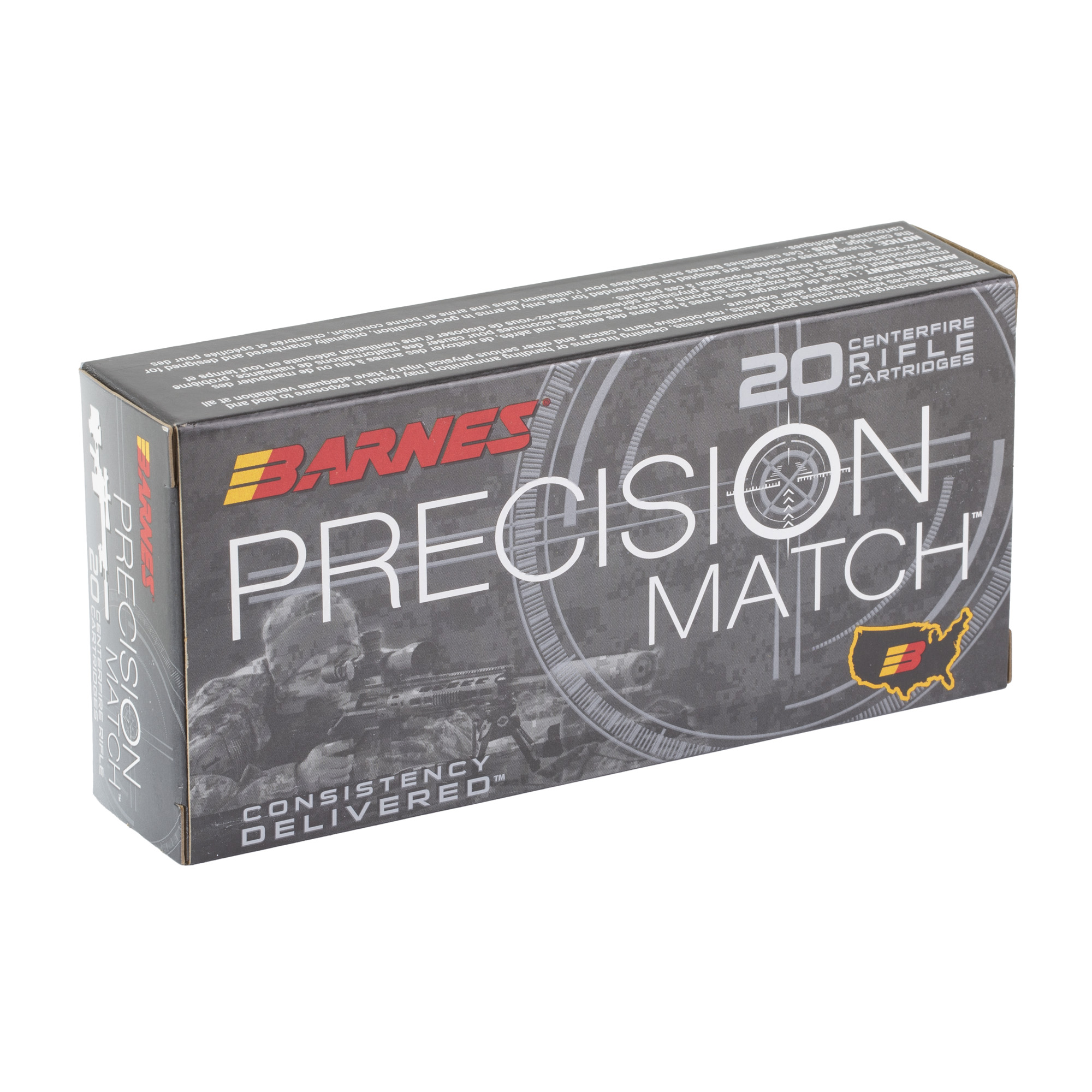 Barnes Precision Match has exceptional long range accuracy, allowing the shooter to send it with confidence every time. The load utilizes a temperature stable propellant for low extreme spreads and standard deviations, and first quality, premium brass.