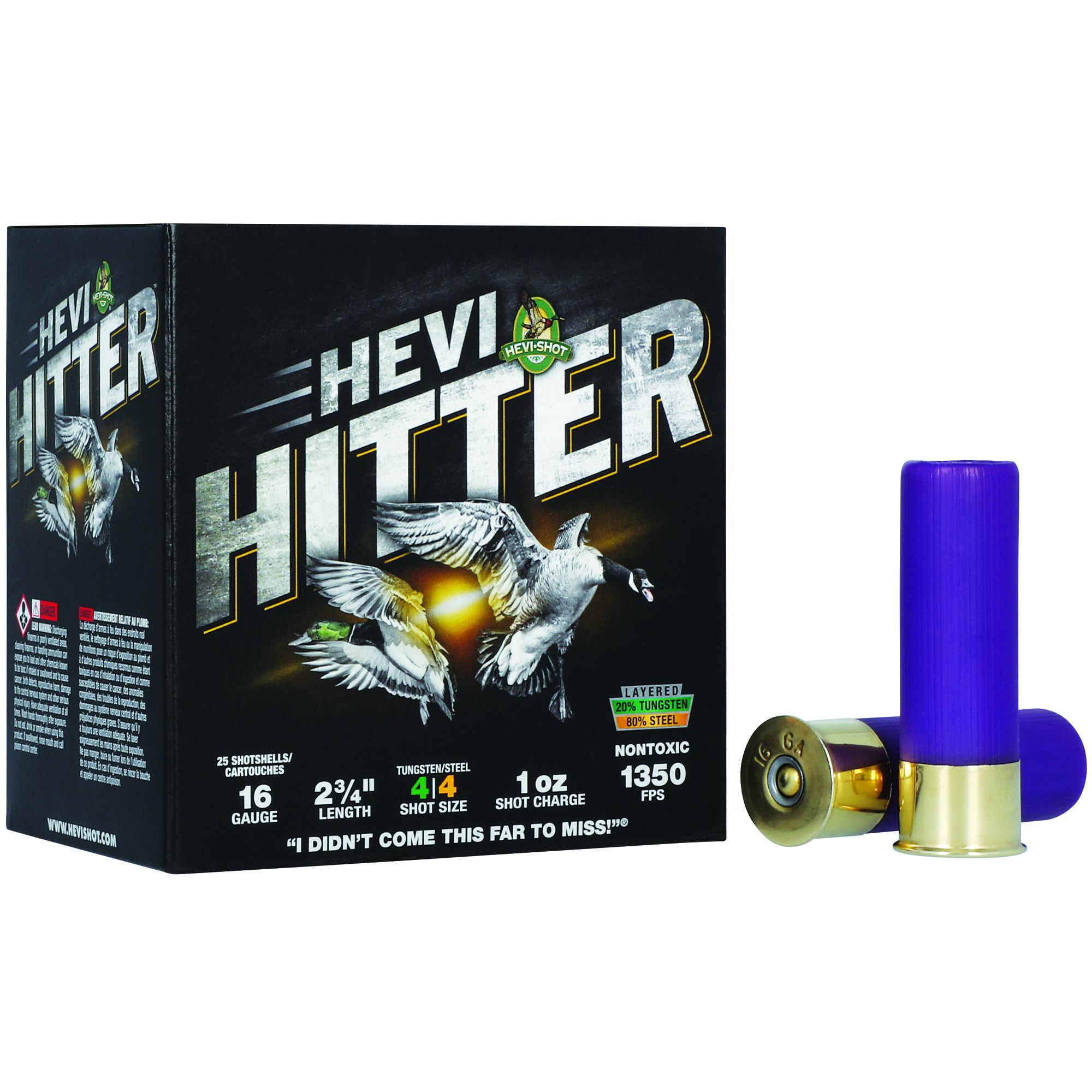 HEVI-Shot, HEVI-Hitter, 16 Gauge, 2.75”, #4, Max Dram, 1oz, Tungsten/Steel, 25 Rounds per Box