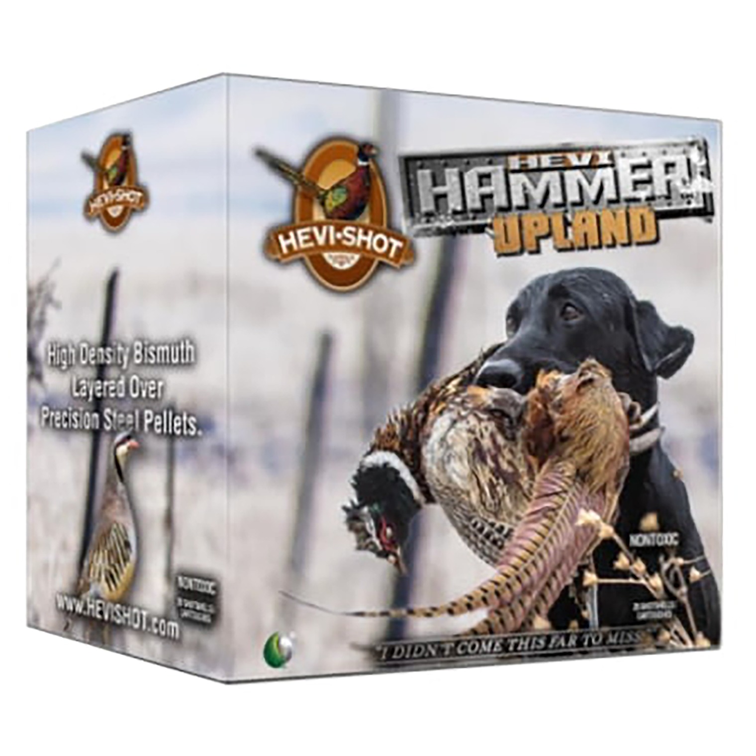 HEVI-Hammer has 15% high density bismuth, layered over 85% steel pellets. The Bismuth layer is the same shot size as the steel. That small but mighty leading edge of bismuth packs nearly 50% more knockdown power than the steel layer at 40 yards.