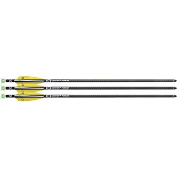 16-inch EVO-X Alpha-Blaze Lighted CenterPunch16 Premium Carbon Crossbow Arrows (3-pack) - The Alpha-Blaze Lighted Nock contains a one-piece Nock/LED unit that is indexed with the vanes and press fits into the arrow’s Aluminum Bushing. Upon firing the crossbow the bowstring’s force compresses the two pieces and activates the lighted nock. - Deactivate the easy on/off Alpha-Blaze lighted nock by pulling the nock straight out until the light turns off no tools required. The LED light of the Alpha-Blaze system lasts for approximately eight hours when activated. - The system features TenPoint’s Alpha-Nock HP that is equipped with an HP Aluminum Bushing for increased strength and accuracy. - The most accurate crossbow arrow ever the CenterPunch 16-inch crossbow bolt is fletched slightly offset and is fitted with an 84-grain insert and TenPoint’s Alpha-Blaze Lighted Nock. Constructed from modulus carbon fiber at 33 MSI (million-pounds-per-square-inch) and wrapped in an exclusive LAZER-TECH carbon weave it is fletched with 3.5 Bohning X Vanes. EVO-X CenterPunch crossbow bolts are inspected for straightness to within .001-inch and each package is weight-grain matched to within 1-grain per arrow. - The Alpha-Nock can be used in any TenPoint Wicked Ridge or Horton Crossbow Innovations crossbow. Use of the Alpha-Nock HP in any of these crossbows will not void the warranty even if your crossbow originally required the use of a flat nock or Omni-Nock. - Straightness: .001 - Grain Weight Tolerance: +/- 1-grain per pack - Weight: 400-grains - F.O.C: 17.5% - Vane: 2.1 Q2i Fusion-II - Inside Diameter: .297 - Outside Diameter: .348