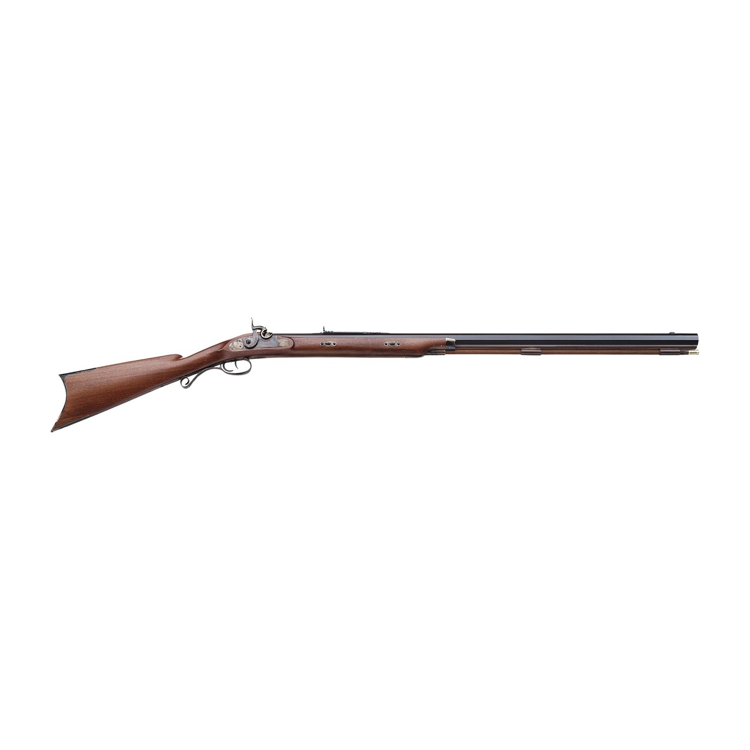 The Hawken is a symbol of the period that saw the passage from the long and heavy small caliber Pennsylvania rifles to more practical and powerful Plains rifles and the abandoning of flintlocks for the far more modern percussion system. The strong barrel and the larger caliber, enabled hits on any target with surprising accuracy. Features an American Walnut stock, heavy blued octagonal barrel and case hardened fittings.