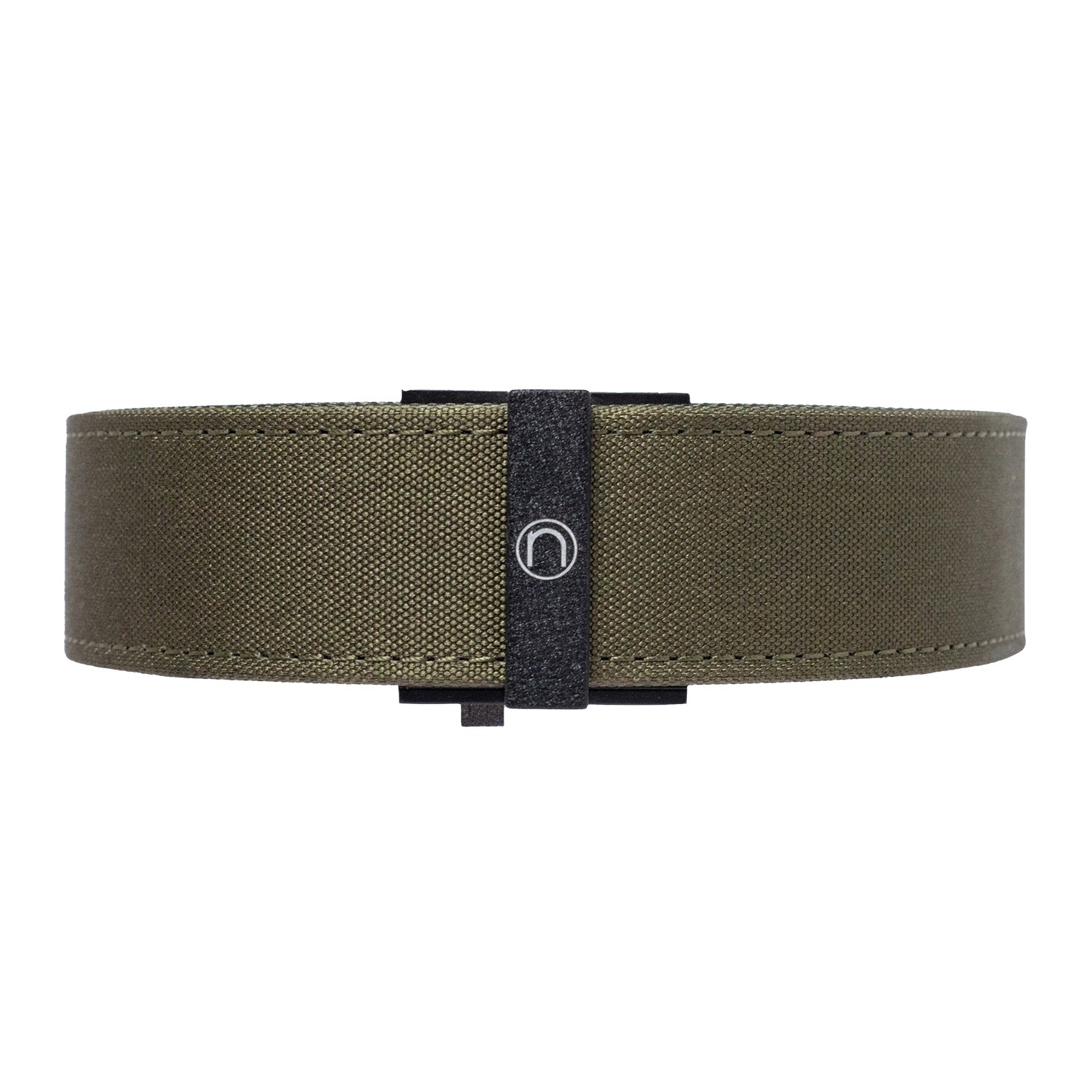 The Thin Bar Supreme OD Green EDC Ratchet Belt is built for serious everyday carry. Combining rugged durability with a streamlined profile, it delivers the fit, support, and stealthy strength needed, without the bulk. The belt features a Granite Black Thin Bar buckle with a tough, powder-coated textured finish for superior wear resistance. Reinforced with three stainless steel set screws (not pins), this buckle locks in for a rock-solid, field-proven hold. Paired with a tactical-grade OD Green nylon strap, this belt is ready for rough environments, high-mobility days, and concealed carry setups. The straps sweat-resistant backing, 1.5 width, and near 3/16” thickness strike the perfect balance between comfort and support whether training on the range or moving through everyday life.