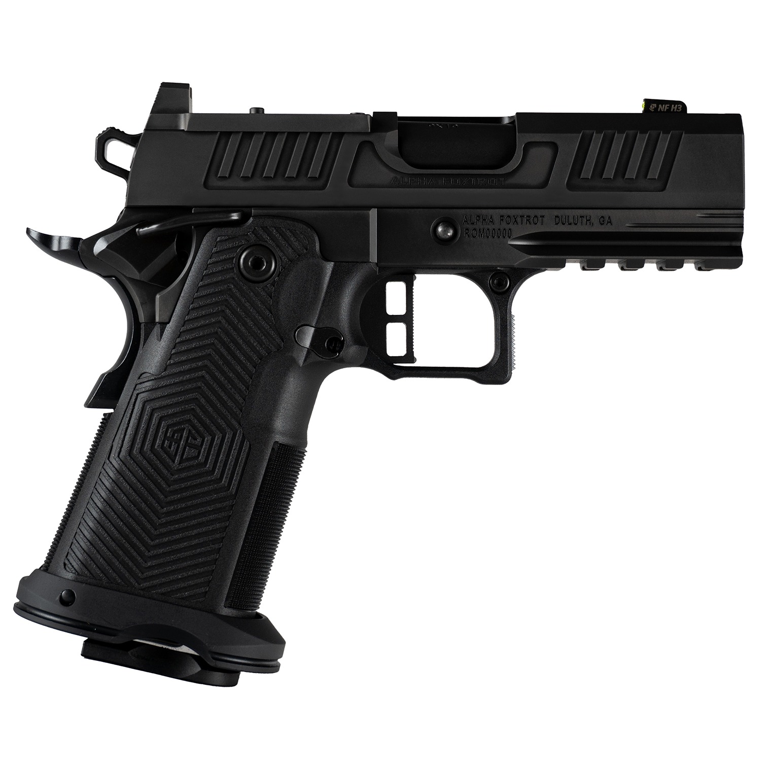 The AF1911 Romulus delivers full-size performance with Alpha Foxtrot’s modern 2011-style engineering. Featuring a black polished DLC finish on the frame and slide; Bull barrel; Night Fision sight; Picatinny rail; ambidextrous thumb safety; flared magwell and is RMSC/RMR optics cut. Includes MOS adapter plate, RMSC and RMR plate, 17rd and 20rd magaine.