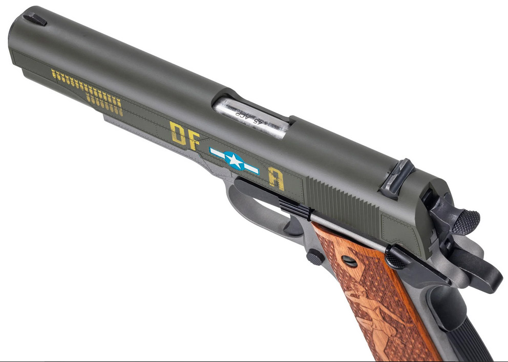 Shooter’s Model are 100% New in the Box products that may have a slight finish imperfection. The slight imperfection would occur during the manufacturing process and are typically very hard to see except to the well-trained eye or with a magnifier. - Auto-Ordnance is proud to present the third plane in our Winged Warriors series of custom guns based on famous aircraft flown in America’s defense the Memphis Belle 1911! Own a piece of history reimagined with this stunning custom pistol paying tribute to the legendary WWII bomber the Memphis Belle. - This iconic aircraft a Boeing B-17F Flying Fortress became one of the most famous symbols of the US Army Air Corps in WWII after it successfully completed its grueling 25-mission tour of duty over Europe and returned home. Celebrated through documentaries and films the Memphis Belle represents the courage and resilience of bomber crews during the strategic air campaign. - Expertly finished in durable Cerakote to capture this legacy the slide features OD Green echoing the aircraft’s livery. Authentic details abound including the iconic Memphis Belle name in classic Cerakote Yellow script on one side alongside military lettering surrounding the star roundel in Cerakote Navy Blue and Snow White. The opposite side proudly displays mission tally marks represented by distinct bomb silhouettes mirroring the original bomber’s markings. Complementing the themed slide is a sleek gray frame with Cerakote Armor Black on the controls. The firearm is finished with unique textured hard wood grips inset with classic pin-up girl artwork capturing the authentic spirit and nose art style of the era. - This pistol is a distinctive homage to a celebrated icon of American aviation history and wartime courage presented on a classic GI 1911 with artwork by the artisans at Altered Arsenal! Chambered in .45 ACP this GI style 1911 is both a collector’s piece and a pistol meant to be enjoyed at the range. - Own a piece of aviation history and a tribute to America’s Greatest Generation with the unique Auto-Ordnance GI 1911 Memphis Belle pistol. - Model 1911BKOC19 - Caliber .45 ACP - Barrel 5 - Length O/A 8.6 - Weight 2.3 lbs - Sights Blade front Rear drift adjustable for windage - Grips Custom Engraved Wood Grips - Magazine 7 Round - Warranty 1 Year