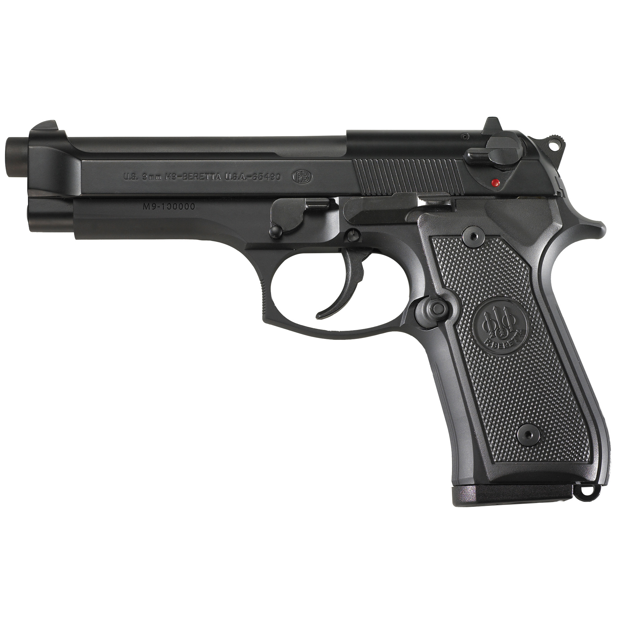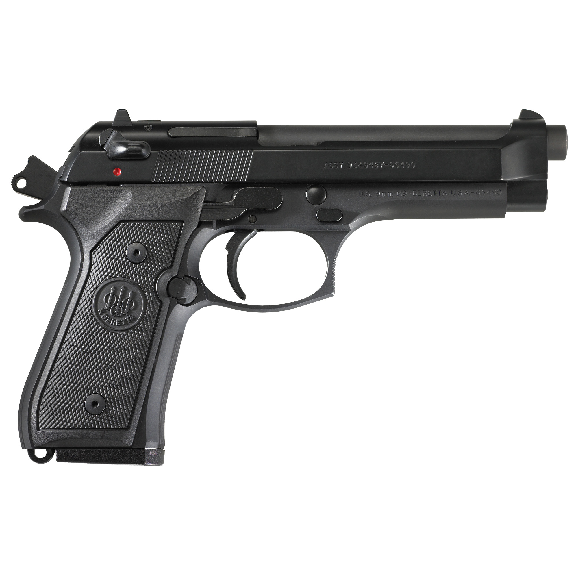 The M9 offers a variety of tactical features that make it equally safe, easy to use and dependable in the holster of military personnel as well as for home or personal defense. Its reversible magazine release enables the use of either hand for tactical magazine changes, while its ambidextrous safety-decocker makes the pistol flexible for right- or left-handed persons or for shooters trying out different gripping or shooting styles. Its Bruniton finish with military-style markings is highly resistant to sweat and corrosion and after shooting, a tool-free disassembly latch makes it simple and quick to take the pistol apart for cleaning.