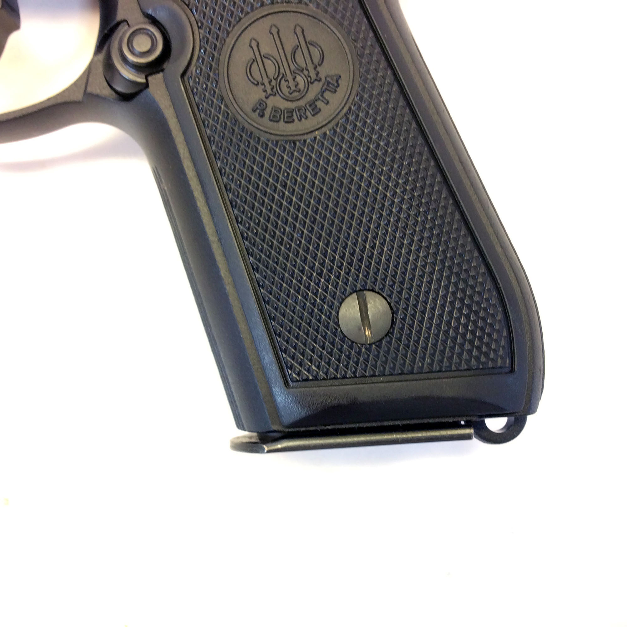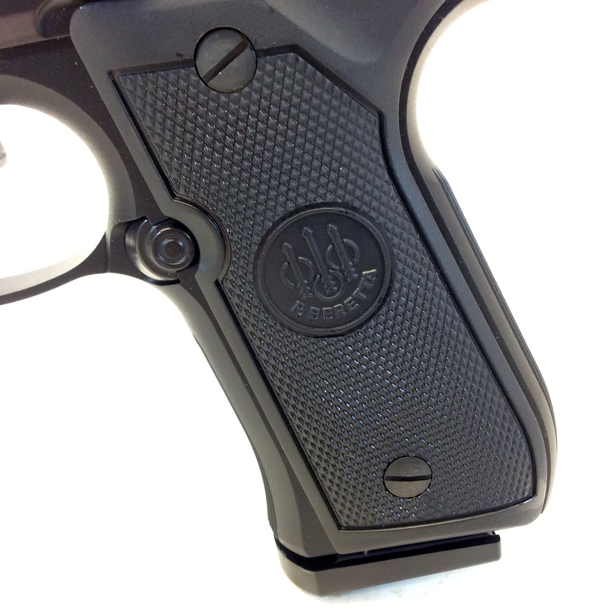 Grips: Original black plastic grips with Beretta medallions