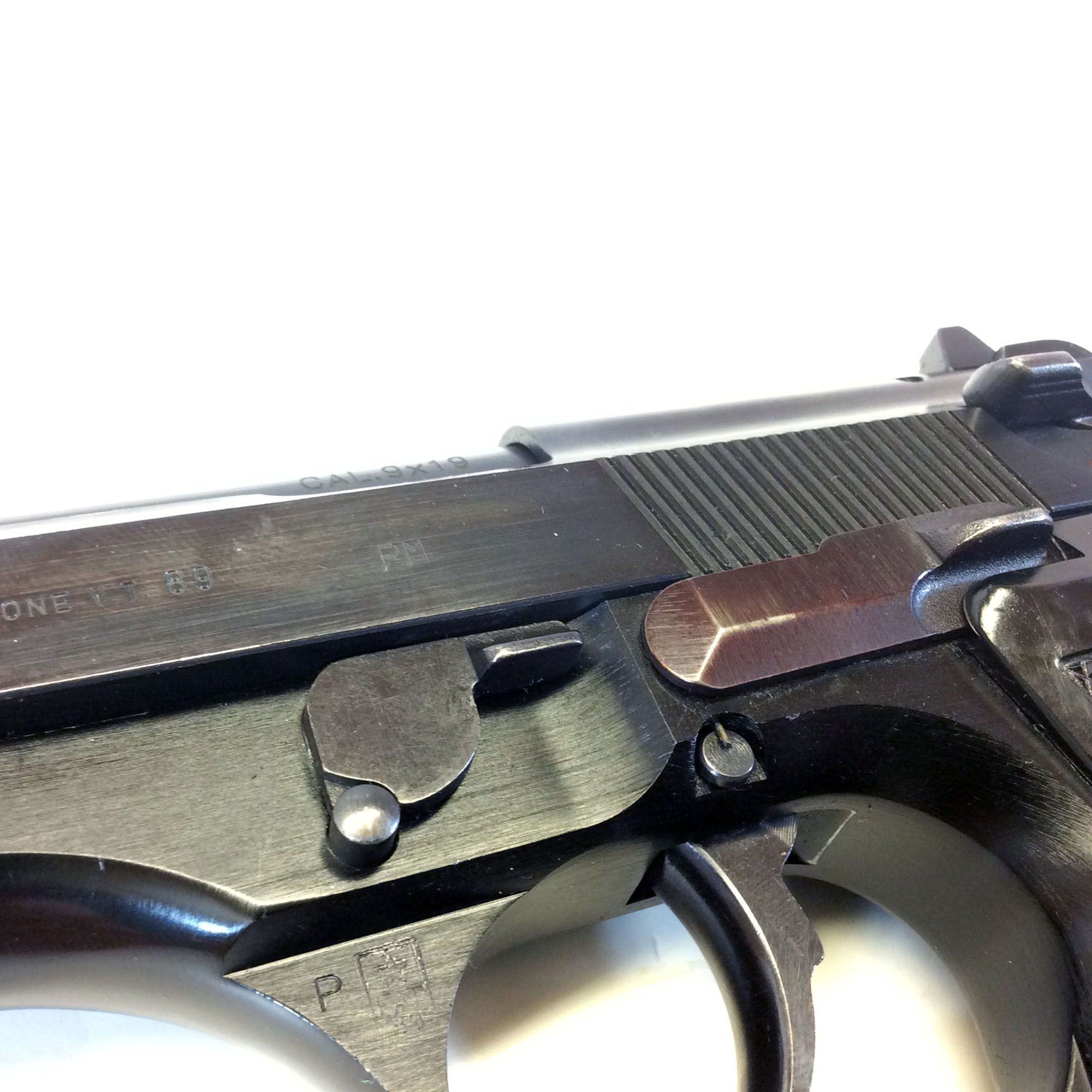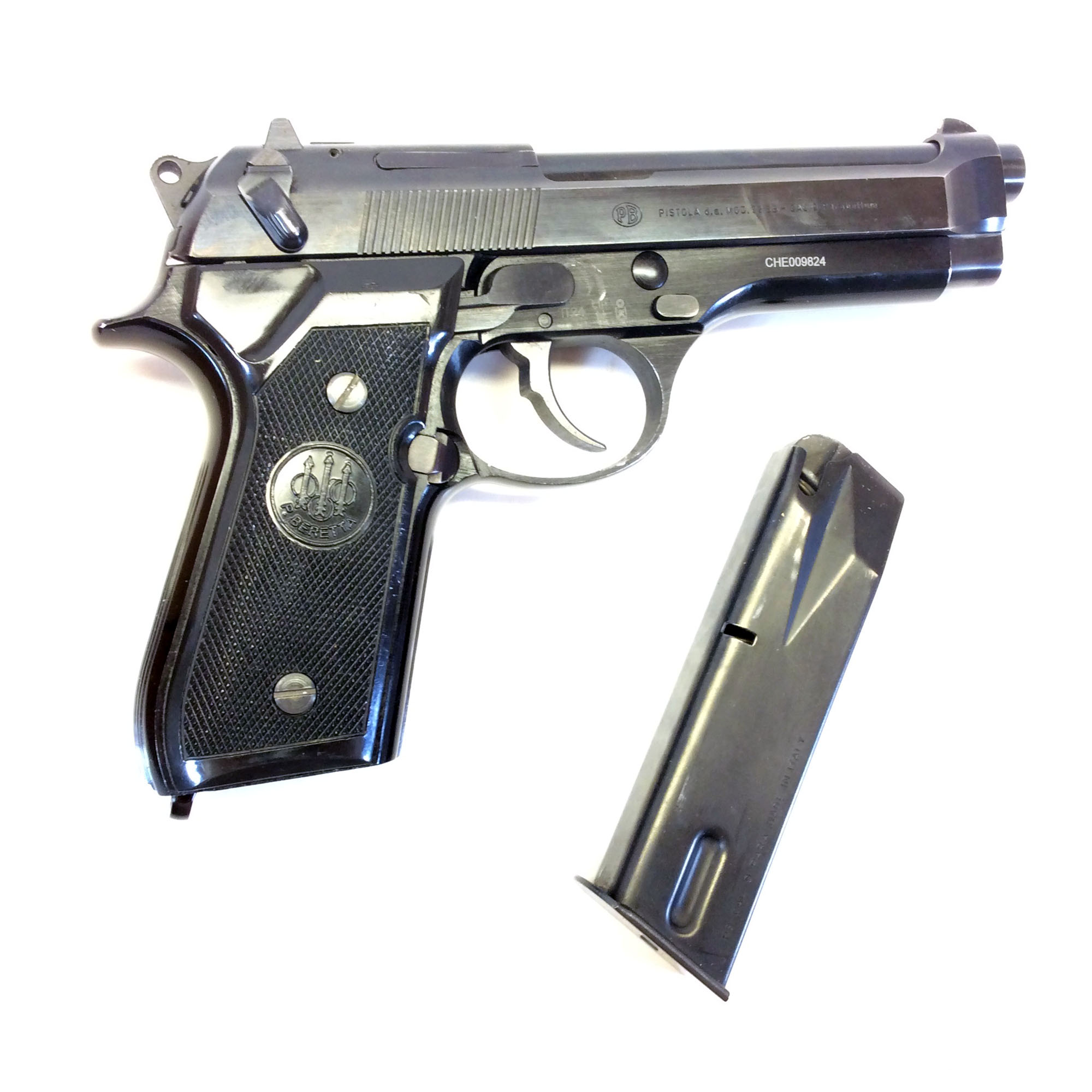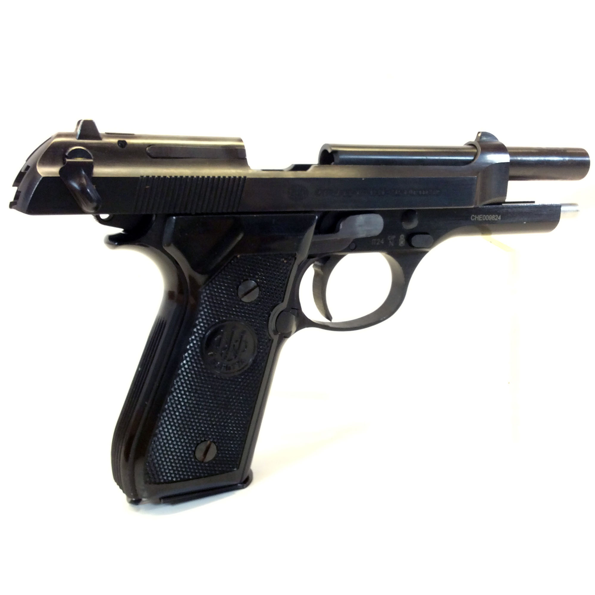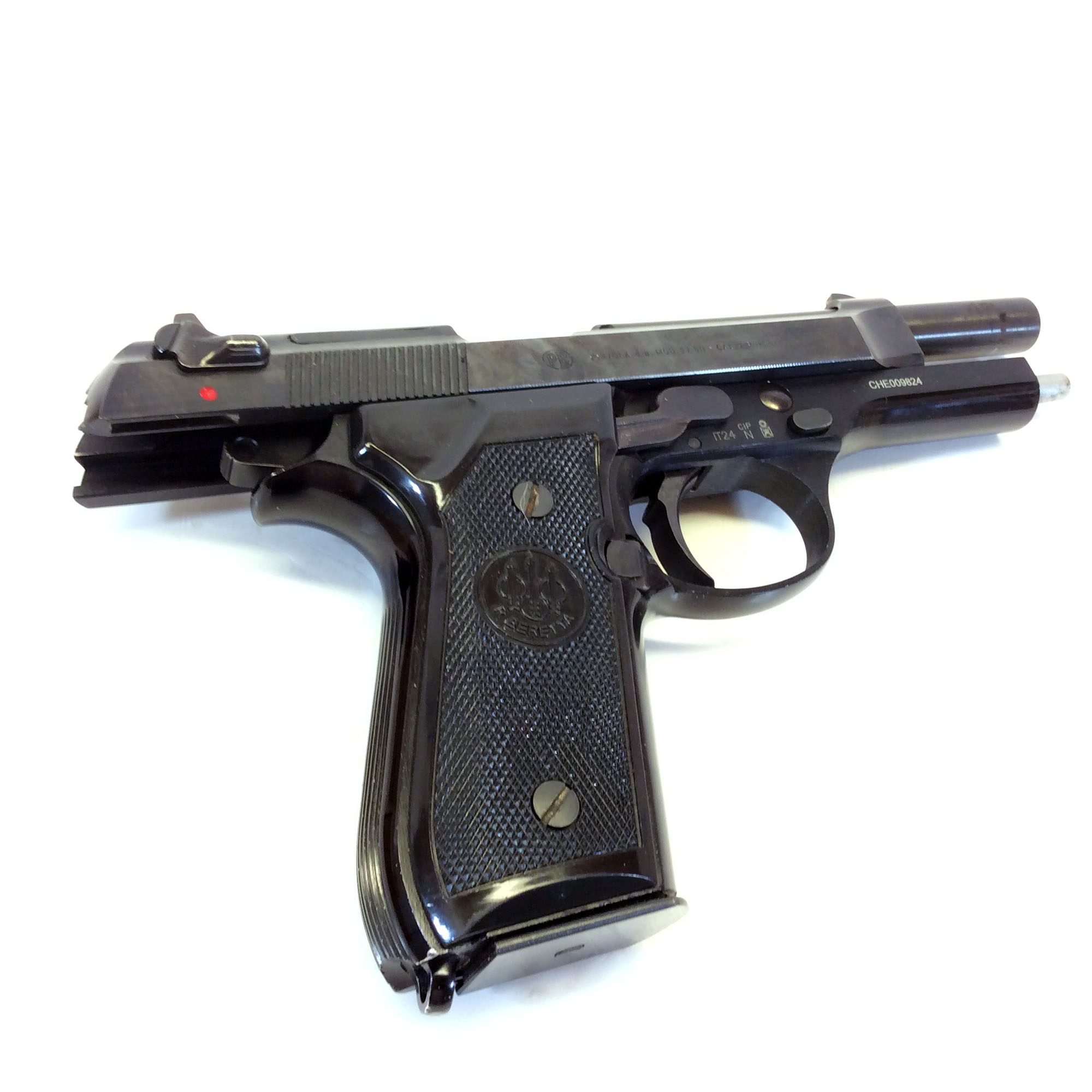 “CHE009824” – Possibly a frame part number? As we have seen this same marking on frames of 92FS’s, there are other various markings above the triggers as well.