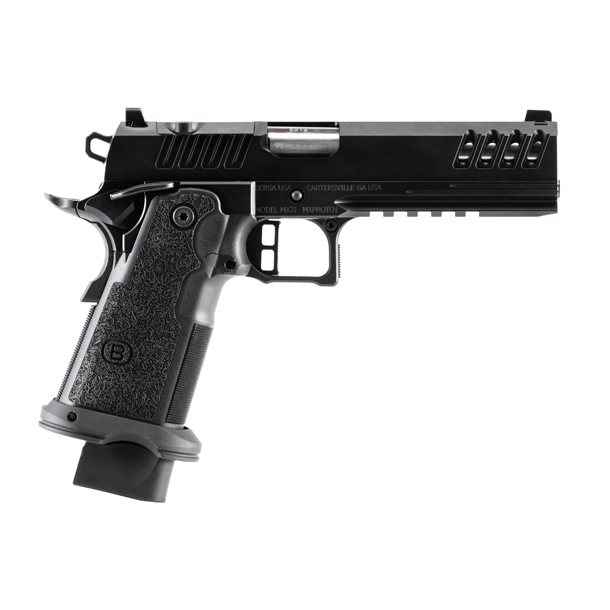 Bersa M2XIO5BBFN M2XI 9mm Luger 22+1 5” Match Grade Bull Barrel, QPQ Tenifer Cerakote Lightening Cut/Optic Cut/Serrated Steel Slide & Frame w/Beavertail & Picatinny Rail, Black Polymer Grip