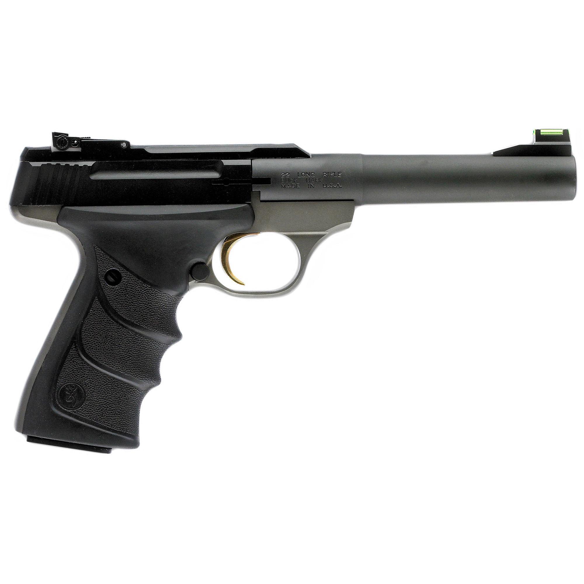 Browning Buck Mark rimfire pistol has lead the industry in quality, reliability, accuracy and variety. It starts with a piece of aircraft-grade 7075 aluminum alloy and then is CNC machined to exacting tolerances. The crisp single-action trigger, hand reamed chamber, target crowned barrel and finely adjustable target sights mean the Buck Mark comes ready for fun straight from the box. The slide features built-in recess and raised side panels for better grip, and a convenient manual slide release which is easily operated with the shooting or support hand. It also has grooves plus slide cocking “ears” at the rear making racking the slide back even more convenient. The Buck Mark also utilizes a large manual safety and mag release adjacent to the trigger guard. Includes ABS case and magazine.