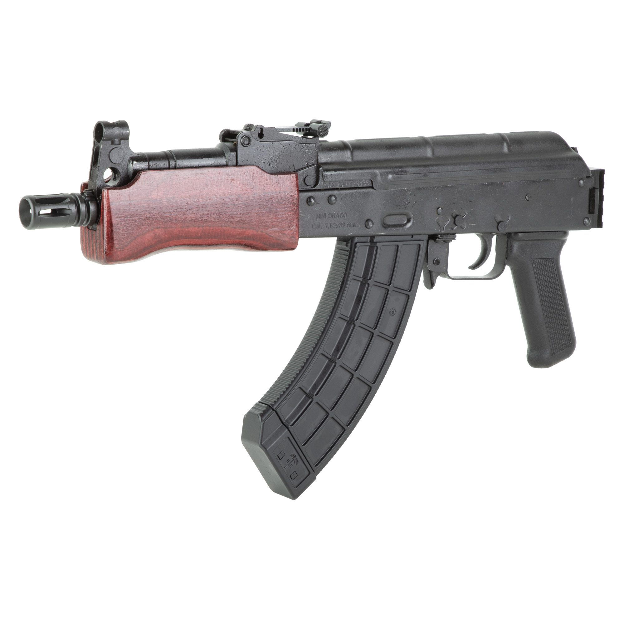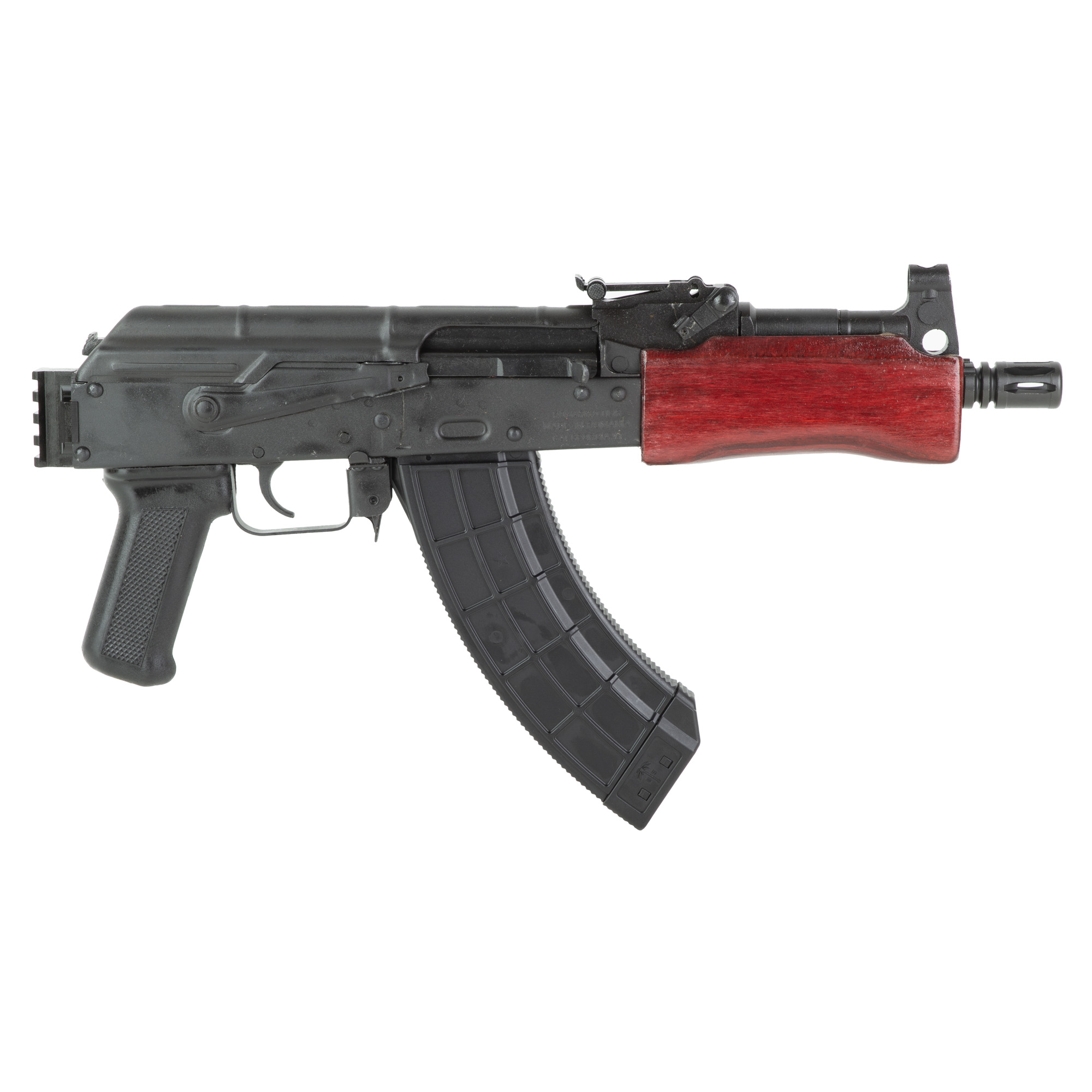 Century Arms, Mini Draco, Semi-automatic Pistol, 7.62X39, 7.75” Threaded Barrel, Russian Red Wood Handguards, Rear 1913 Picatinny Rail, Matte Finish, Black, 30 Rounds, 1 Magazine