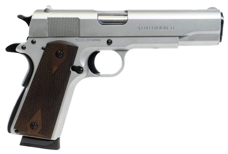 The Century Arms Centurion 11 is a modern reproduction of the classic military-spec 1911 pistol, chambered in .45 ACP and finished in eye-catching chrome. Featuring a 5.01-inch barrel, 8+1 capacity, and full-size steel frame, this single-action semi-automatic handgun delivers timeless 1911 ergonomics and rugged reliability at an affordable price point.