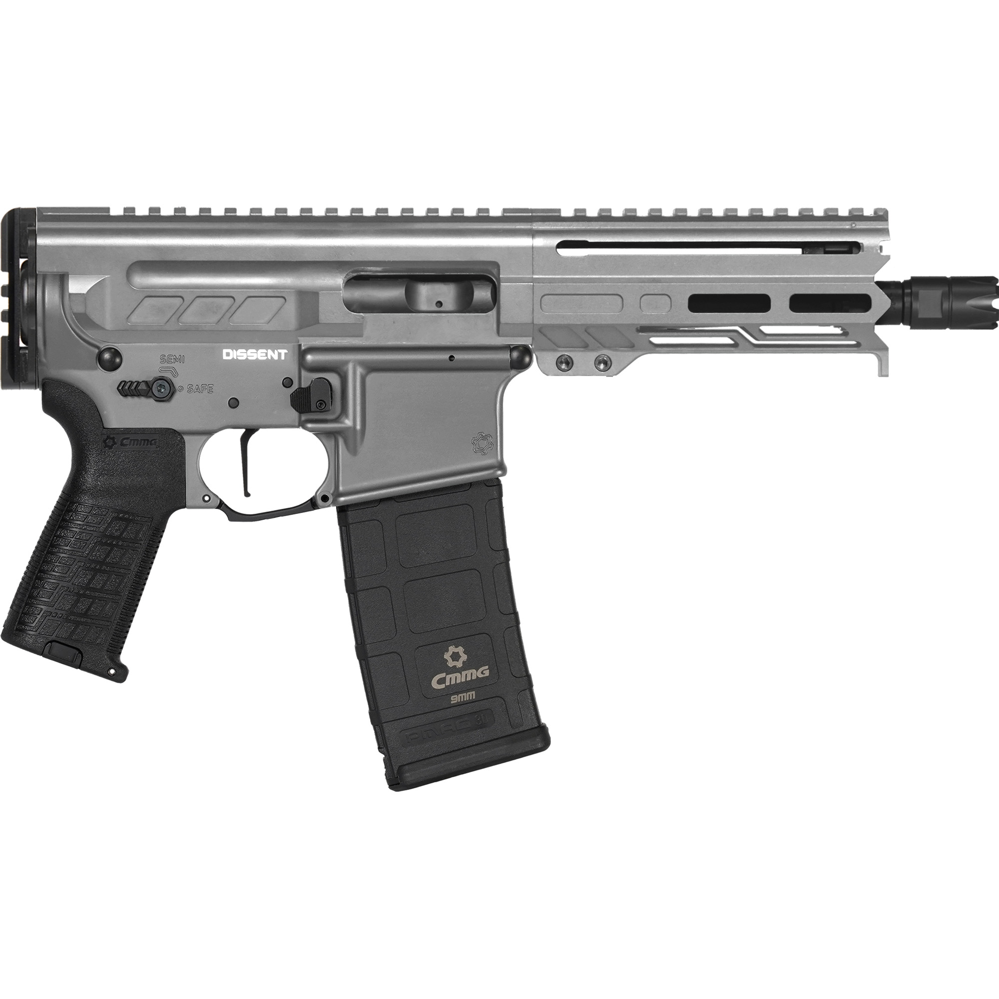 CMMG 94A6867TNG Dissent MK4 9mm Luger 33+1 6.50”, Tungsten Gray Rec, Picatinny Brace Adapter, 5.50” M-LOK Handguard, Left Side Charging Handle, Zeroed Linear Comp, Zeroed Drop-In Single Stage Trigger