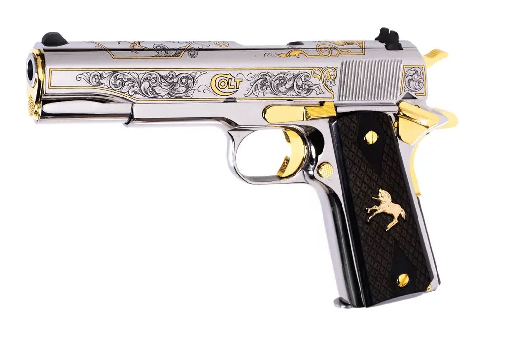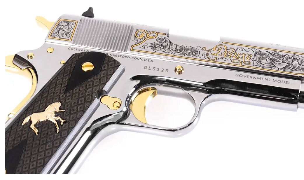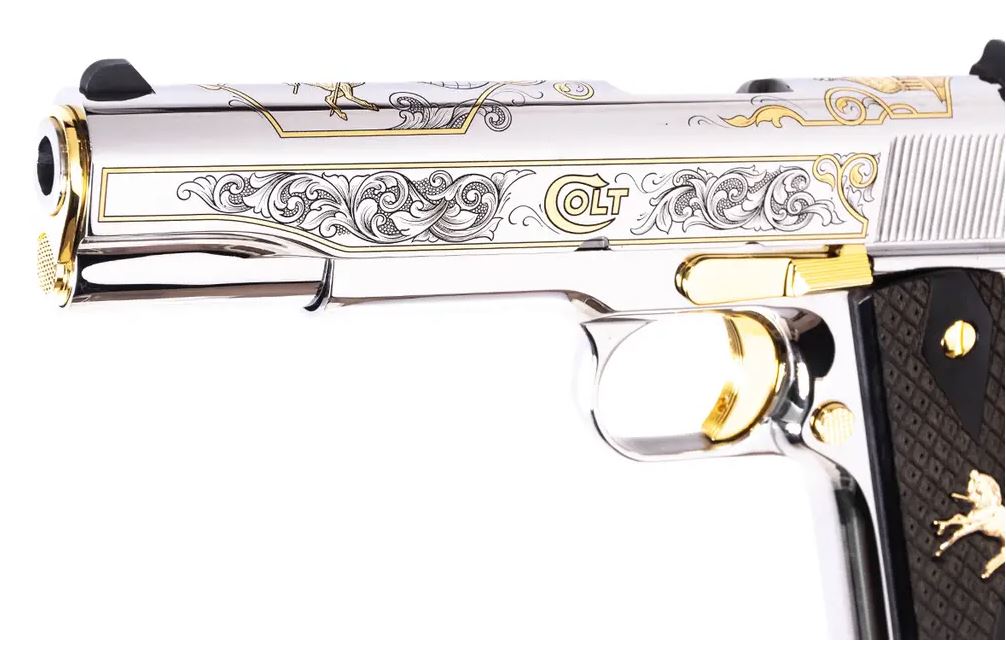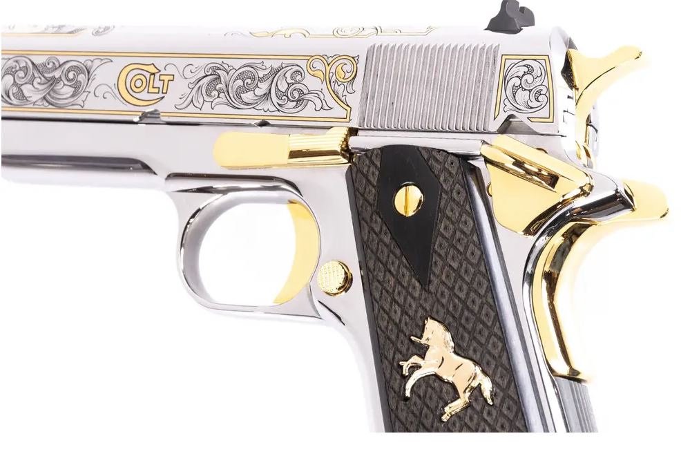 • 24kt gold-plated Rampant Colt, Colt Dome, and vine scrollwork