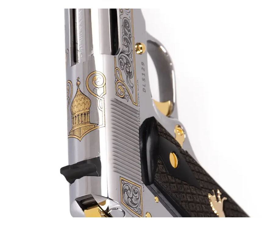 • 24kt gold-plated small parts (barrel bushing, grip screws, grip safety, slide stop)