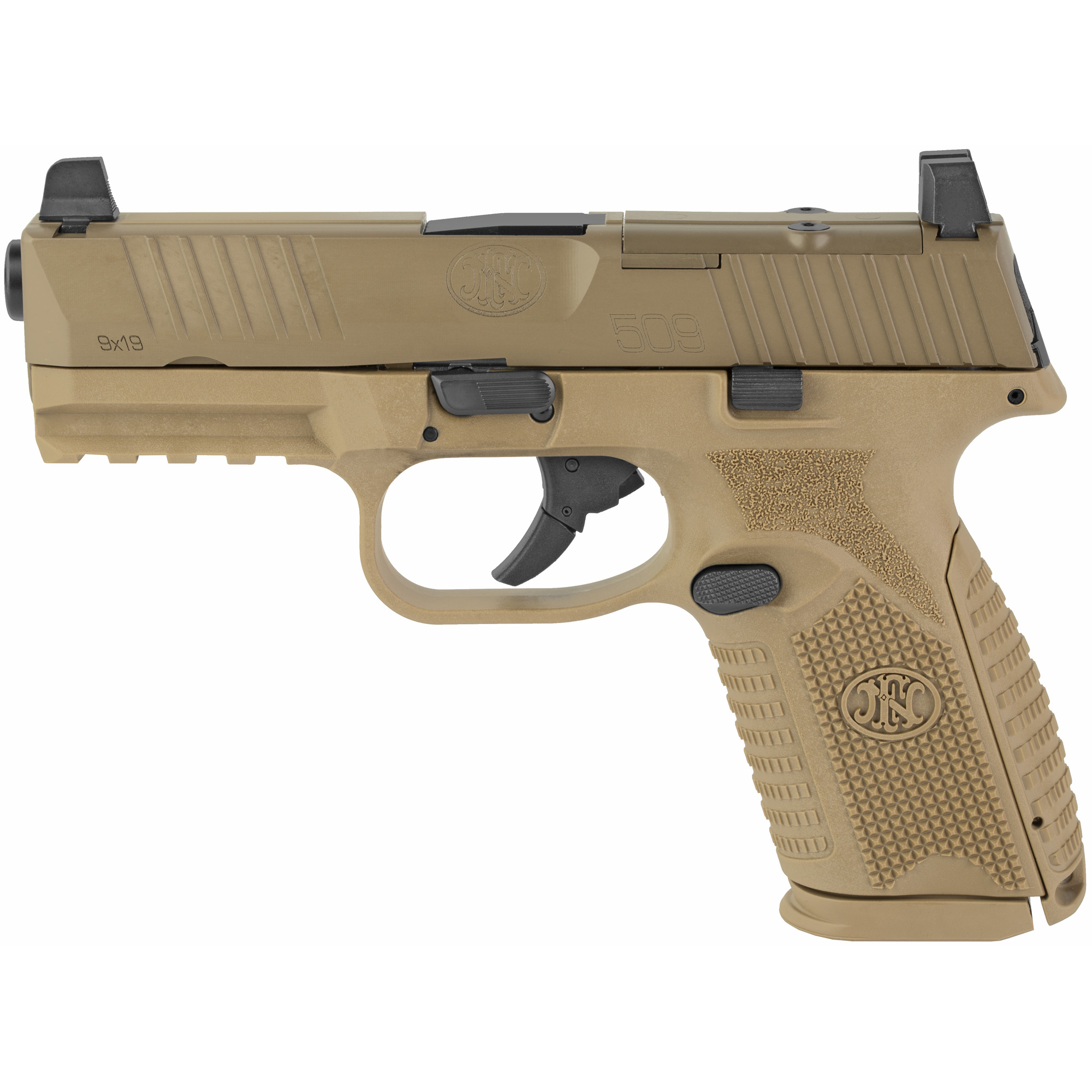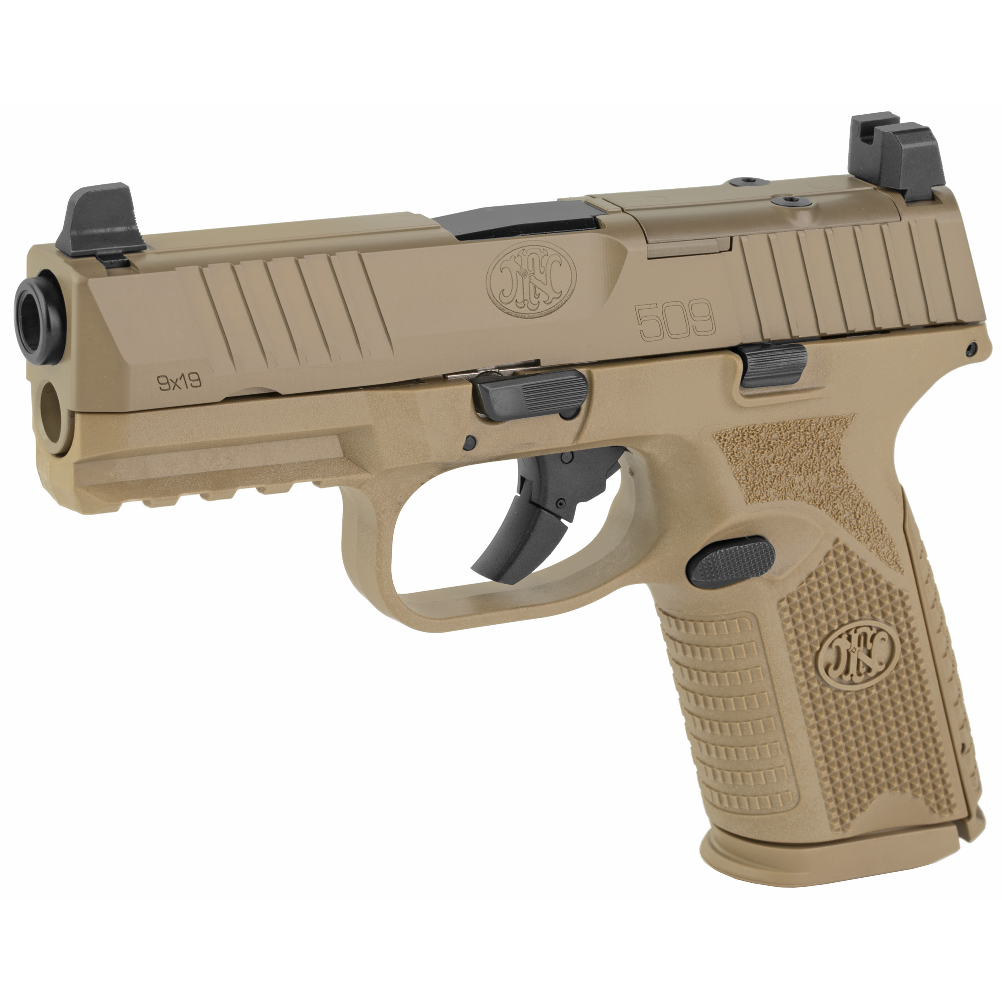The FN 509M MRD featuring the FN Low Profile Optics Mounting System, gives you the option of direct mounting more than 10 different miniature red dot optics to your concealed carry pistol. With a 4” slide and barrel and a midsize is an easily-concealed package. Features improved controls; improved texturing on the two included backstraps; flat faced trigger; fully ambidextrous controls; MIL-STD-1913 accessory mounting rail; cold hammer-forged stainless steel barrel with a recessed target crown; combat-style sights and improved front and rear cocking serrations. Includes two magazines, case, locking device and owners manual.