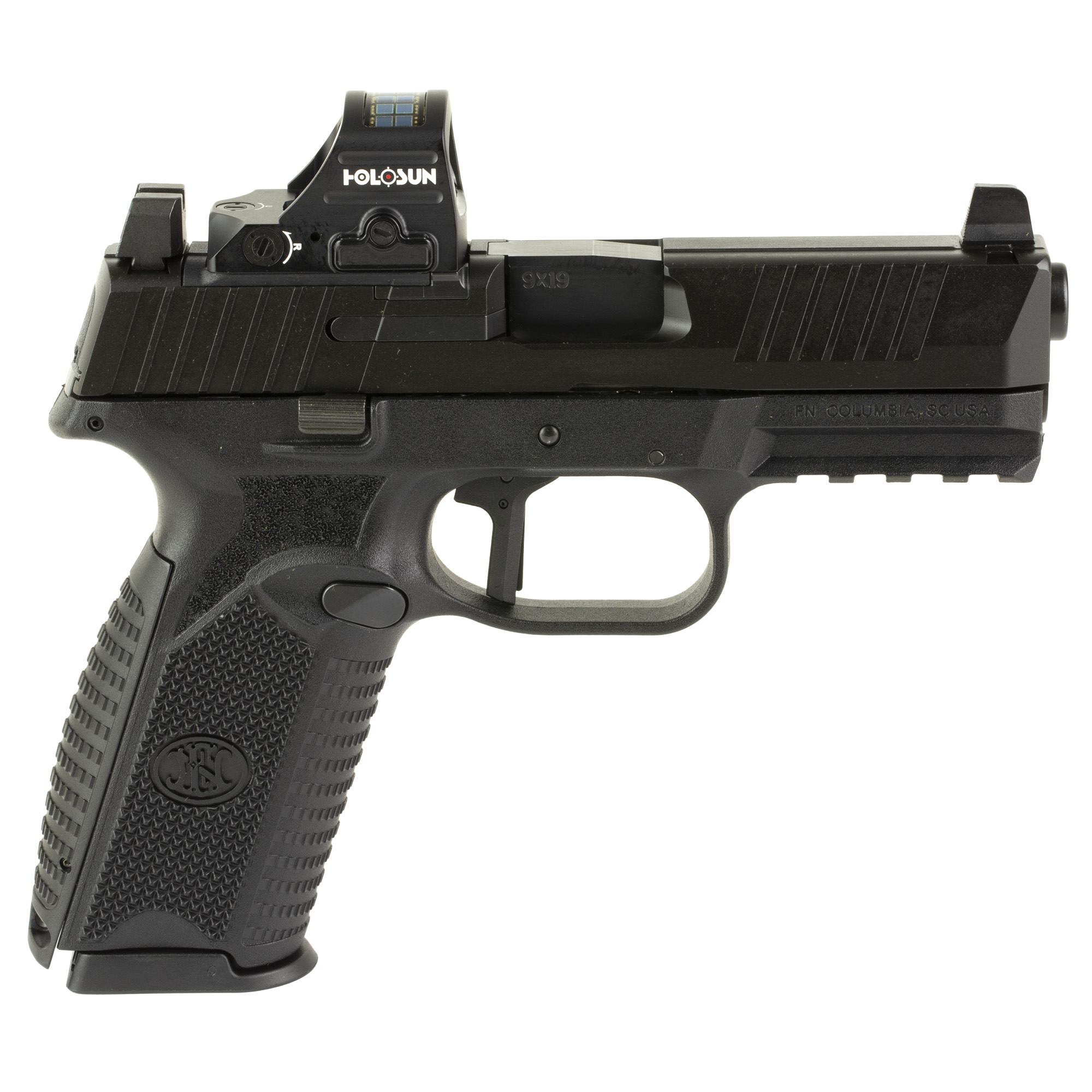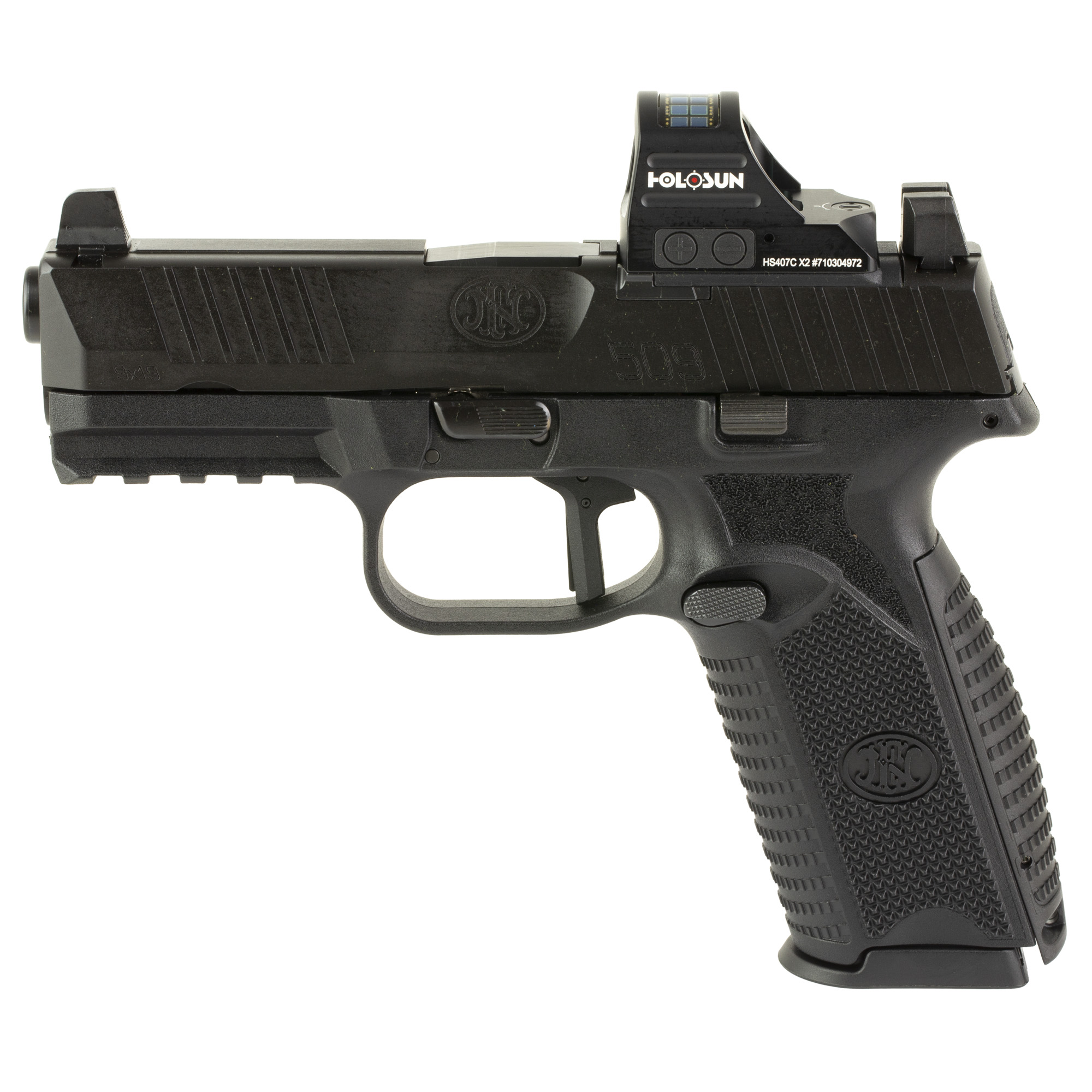 The FN 509 MRD full size pistol equipped with the patented Low Profile Optics Mounting System for users who want a full-sized duty-style pistol for personal or home defense. The pistol is chambered in 9mm and features a 4.50” cold hammer-forged barrel featuring the FN 509 signature recessed target crown to protect rifling, maintain accuracy and performance throughout the lifespan of the pistol. The slide and frame offer a secure grip and reduced recoil. Includes Holosun 407C Red Dot, FN logo soft case, two 17rd magazines, four MRD mounting plates, owners manual and gun lock.