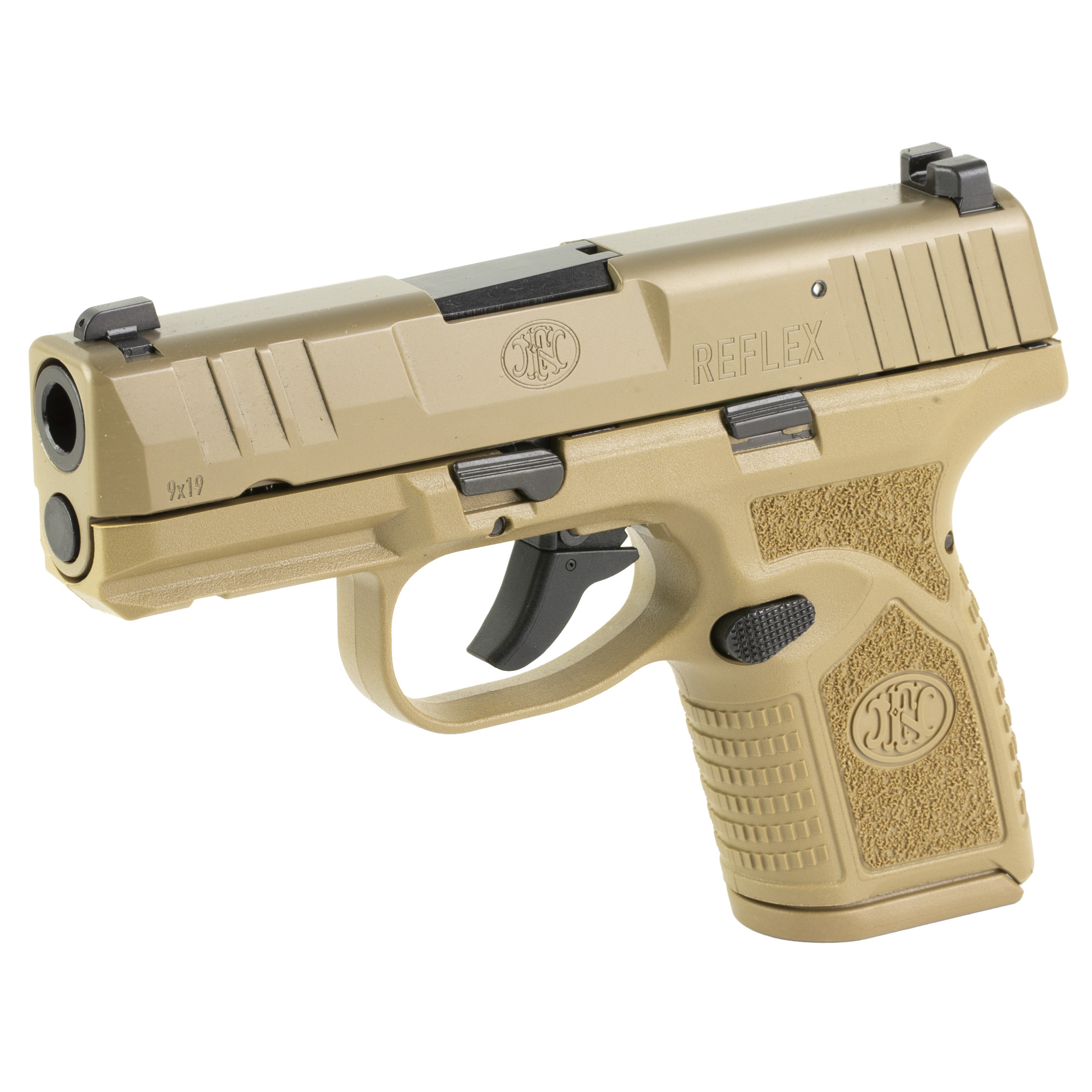 The FN Reflex is a pistol for everyday carry and perfected for deep concealment, with a thin profile that won’t print under cover garments. The Reflex features an internal hammer and multiple redundant safeties; advanced ergonomics for control and shootability; hammer forged barrel; multi-faceted grip texture; reversible magazine release; 1” slide for all-day carry comfort; long wearing PVD finish; slim line rail mount for sub compact lights; steel dovetail front tritium sight with high visibility orange dot, rear double-dot sight. Includes two 10rd magazines.
