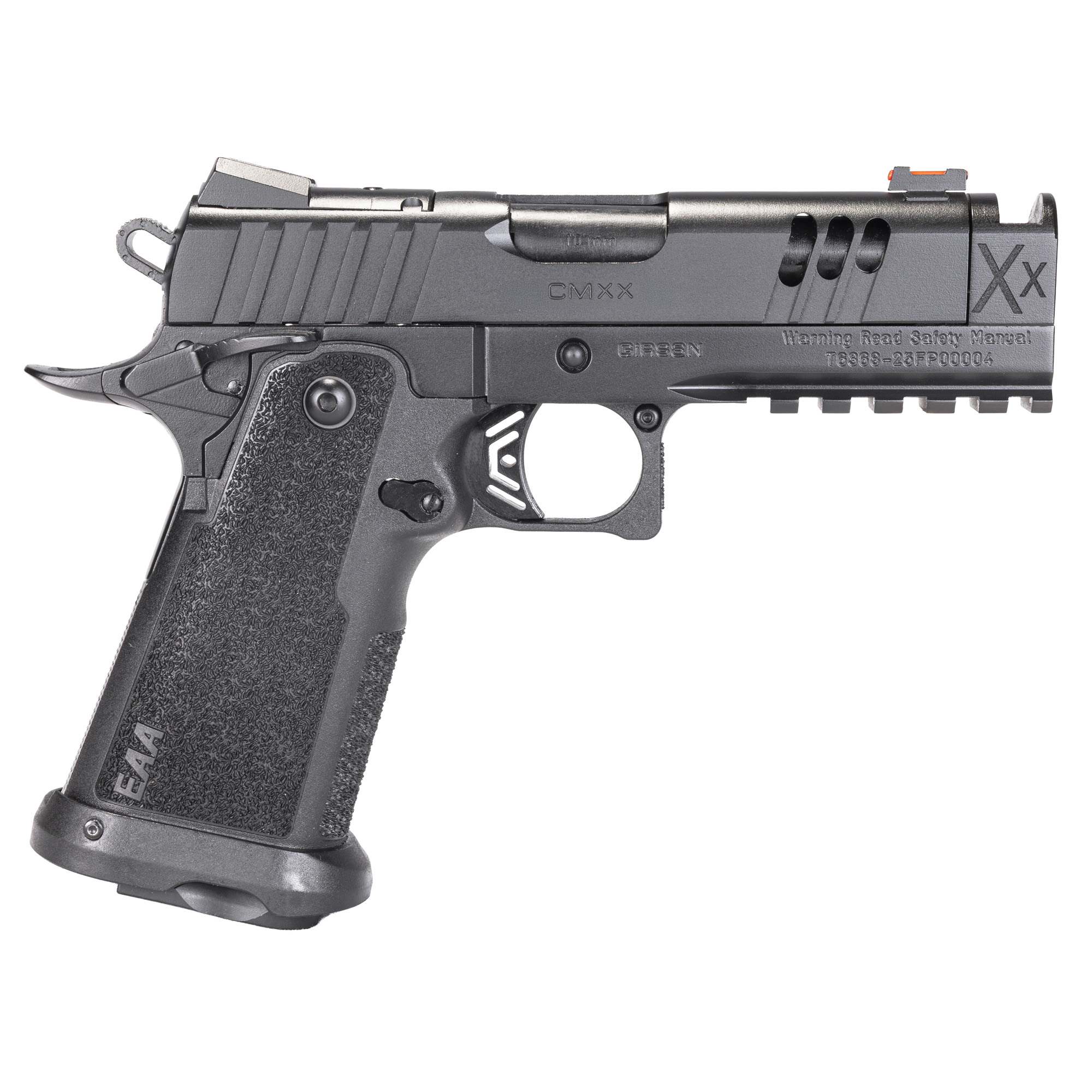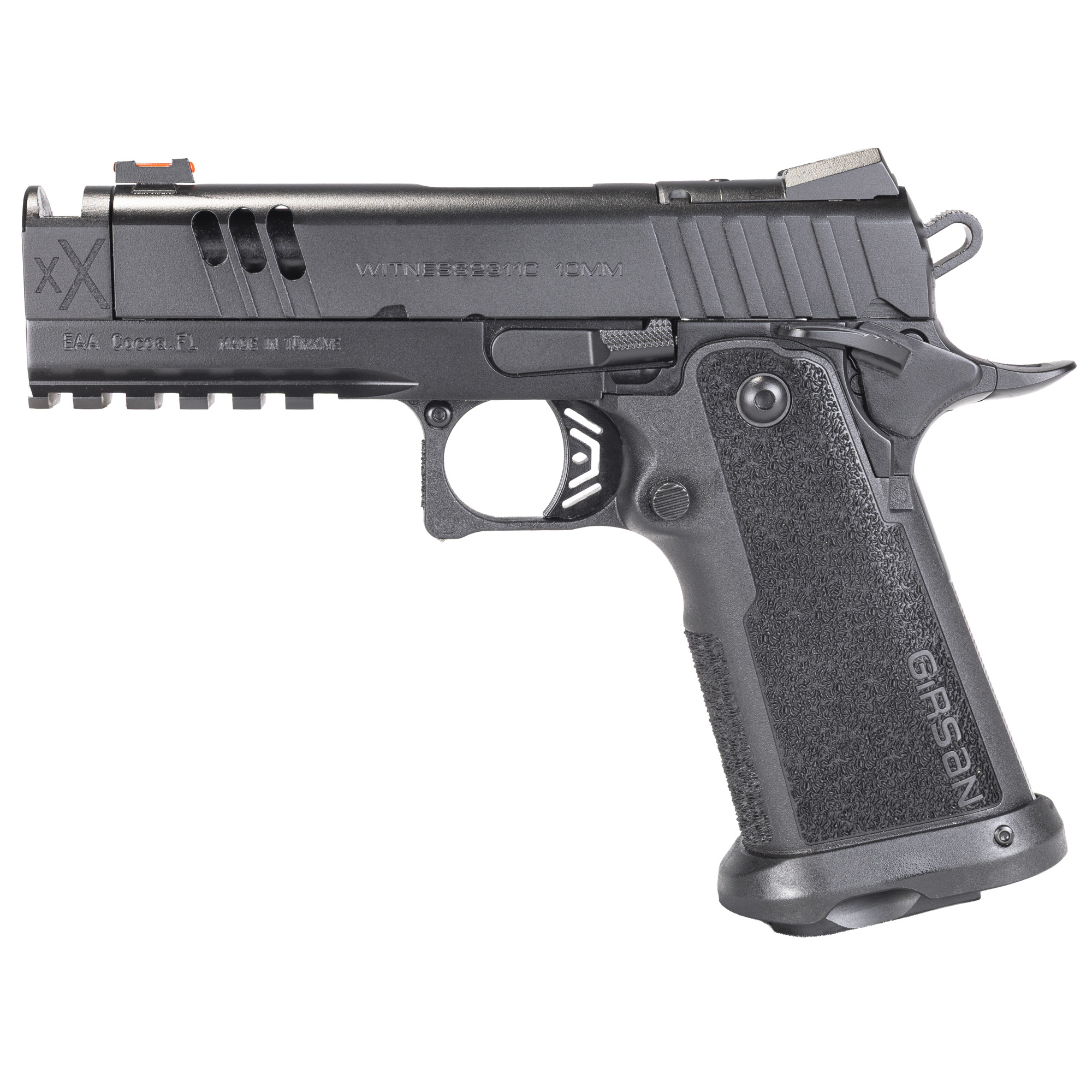 Girsan, Witness 2311 Match XX, Semi-automatic, Single Action Only, Metal Frame Pistol, Full Size, 10MM, 4.25” Integrally Compensated Barrel, Cerakote Finish, Black, Optics Ready, RMSc Footprint, Fiber Optic Front Sight, Magwell, 15 Rounds, 1 Magazine