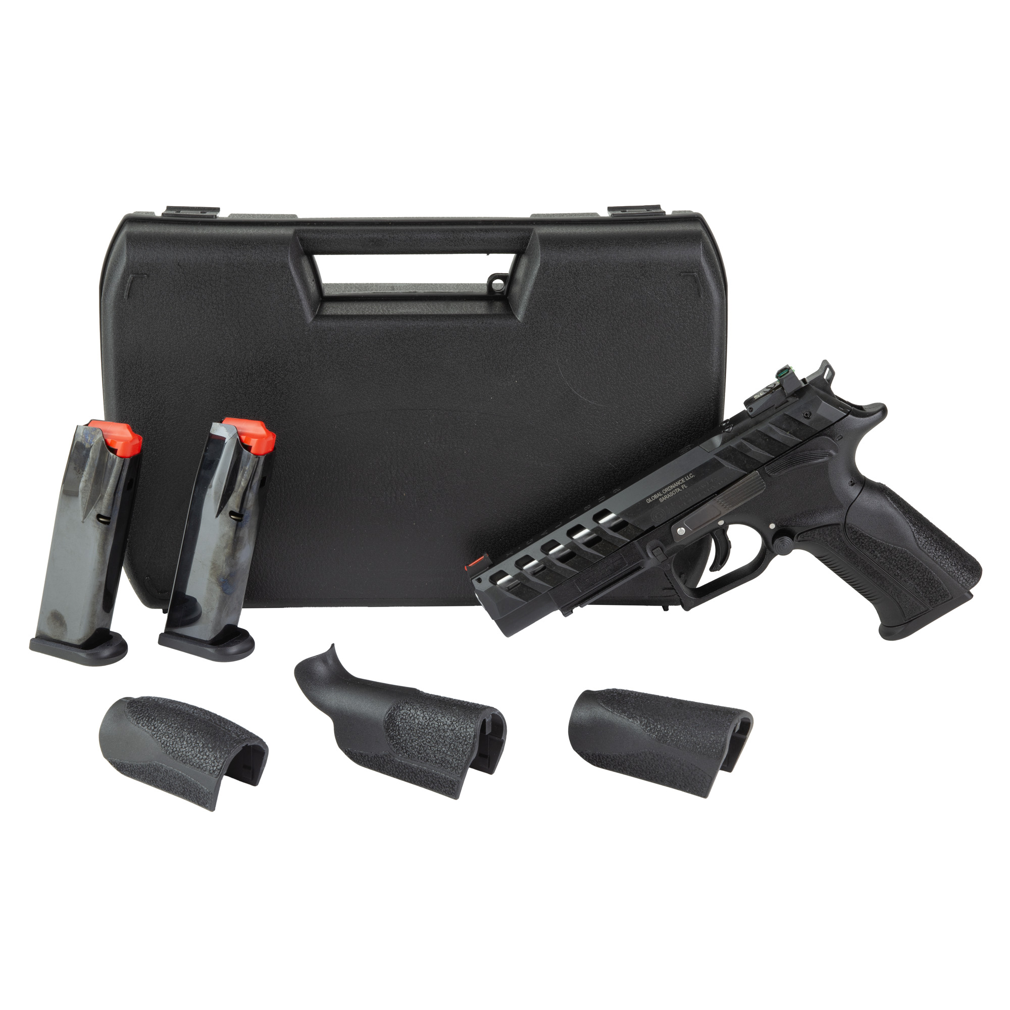 The MK23 X-Calibur CO pistol delivers a delightful shooting experience with its crisp trigger and short reset, catering to the precision demands of the sport shooting. Featuring a factory-fitted red fiber optic front sight and an adjustable rear sight; an optic cut, aggressive slide and an enhanced textured grip. Includes three magazines, three interchangeable backstraps, trigger lock, bore brush, owners manual and four mounting plates compatible with Vortex/Docter Noblex, Trijicon RMR, CMORE STS2 and Shield SMS patterns.