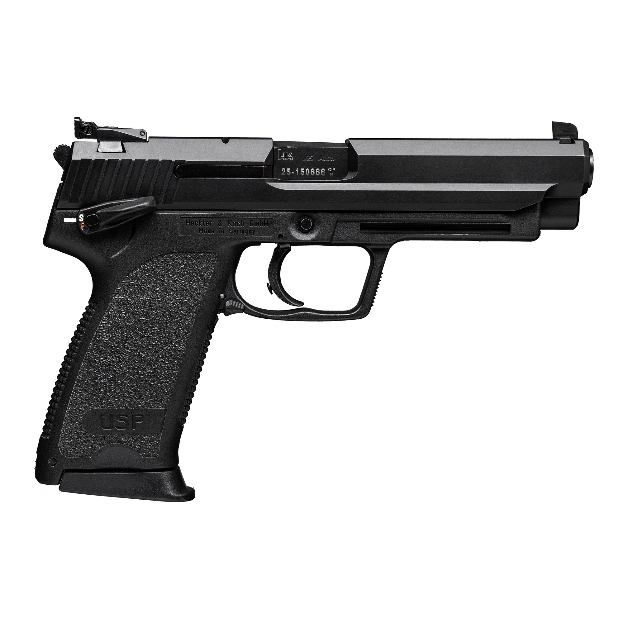 The USP series was developed in the early 1990s by Heckler & Koch engineers as the company’s first undertaking to design a handgun especially for the American civilian and law enforcement markets. Combining traditional blowback operation using a modified Browning locking system on a high strength polymer frame, the USP has a well earned reputation for reliably and robust simplicity. The USP Expert offers significant additional features making it a unique handgun designed for specialized applications. It combines elements of the USP Tactical, USP Elite, and Mark 23 with a long slide design. The result is a highly accurate pistol ideally suited to IPSC (International Practical Shooting Competition) and other practical target shooting applications. In addition to its longer slide the longest found on any HK pistol the USP Expert has the same adjustable target sights, ambidextrous control levers (with safe, fire and decock functions), and an O-ring barrel found on other specialized models of the USP.