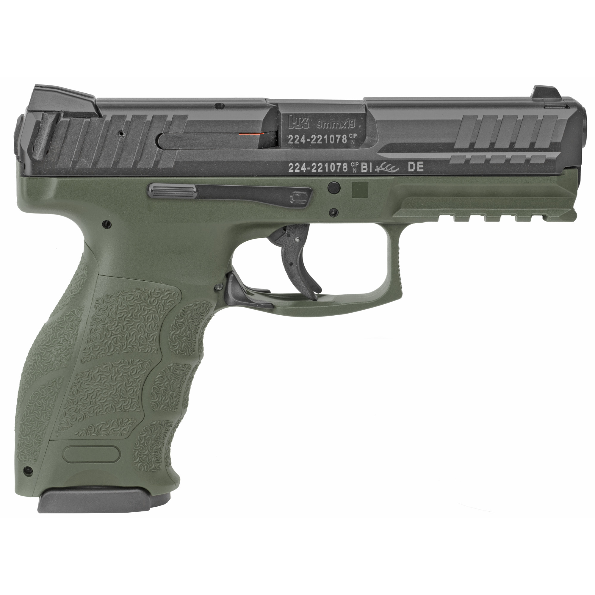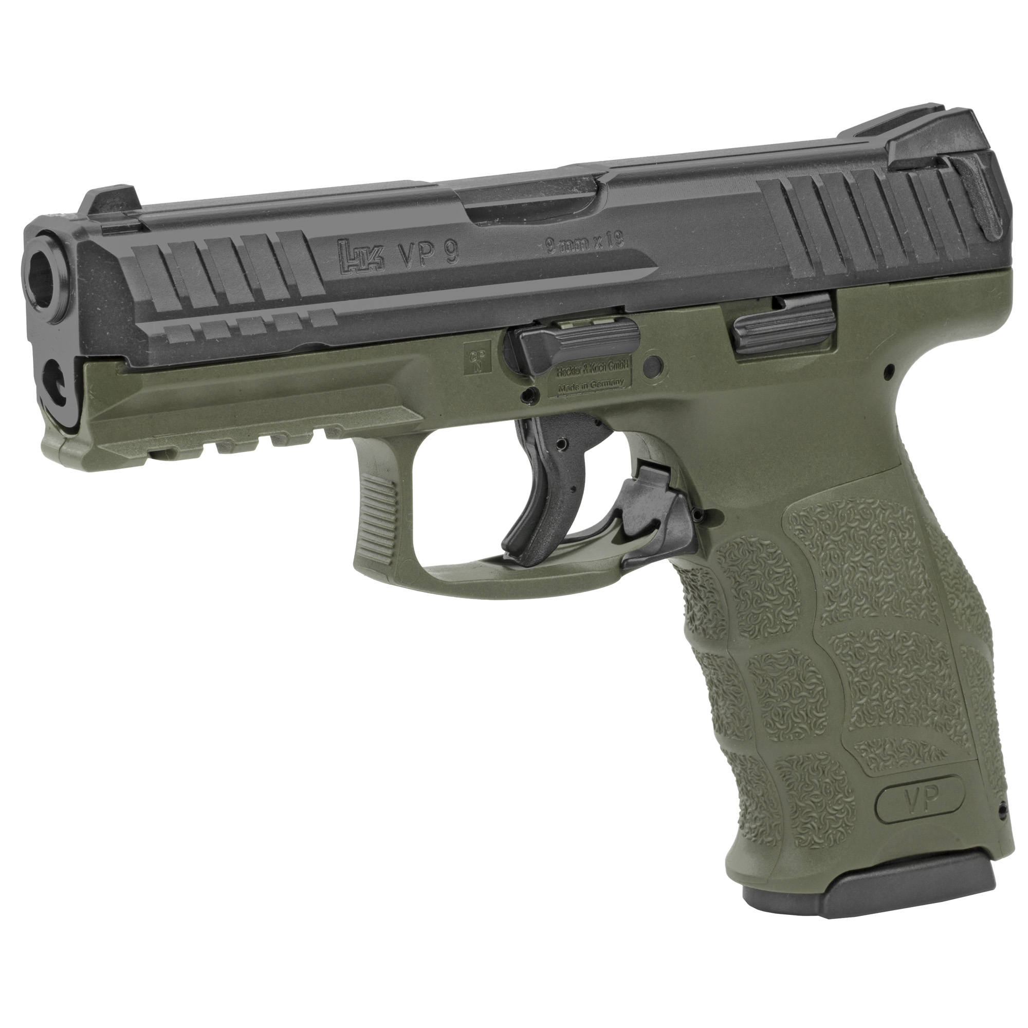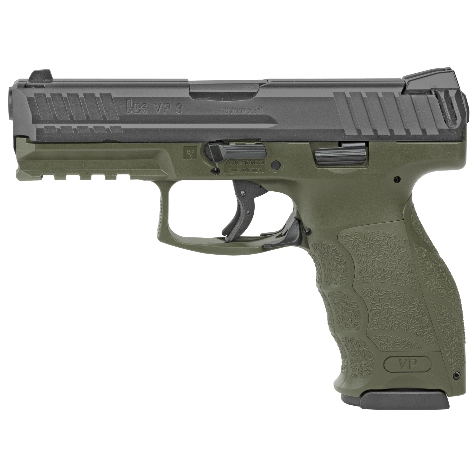 The VP9 is well-suited for civilian sport shooting, security, military and law enforcement use. The cold hammer-forged barrel made from cannon grade steel ensures long service life, as does the polygonal bore profile which also provides a slight increase in muzzle velocity. Ergonomic, adjustable grip Every detail, including the grip angle, the contour of the front strap and the high rear saddle were chosen to fit the human hand. And the adaptable grip frame allows you to interchange both backstraps and grip panels in 27 unique configurations to fit your hand. The VP trigger has a short, light take-up with a solid, single action type break followed by a short positive reset. The VP9 has an extended Picatinny MIL-STD-1913 rail molded into its polymer frame and machined steel slide with a protected from corrosion finish. In addition to these features, all controls are completely ambidextrous including HK’s patented charging supports simple components that are mounted on each side of the rear of the slide and provide better gripping leverage for racking the slide rearward. Includes two magazines, two additional backstraps and two additional sets of lateral grip plates.