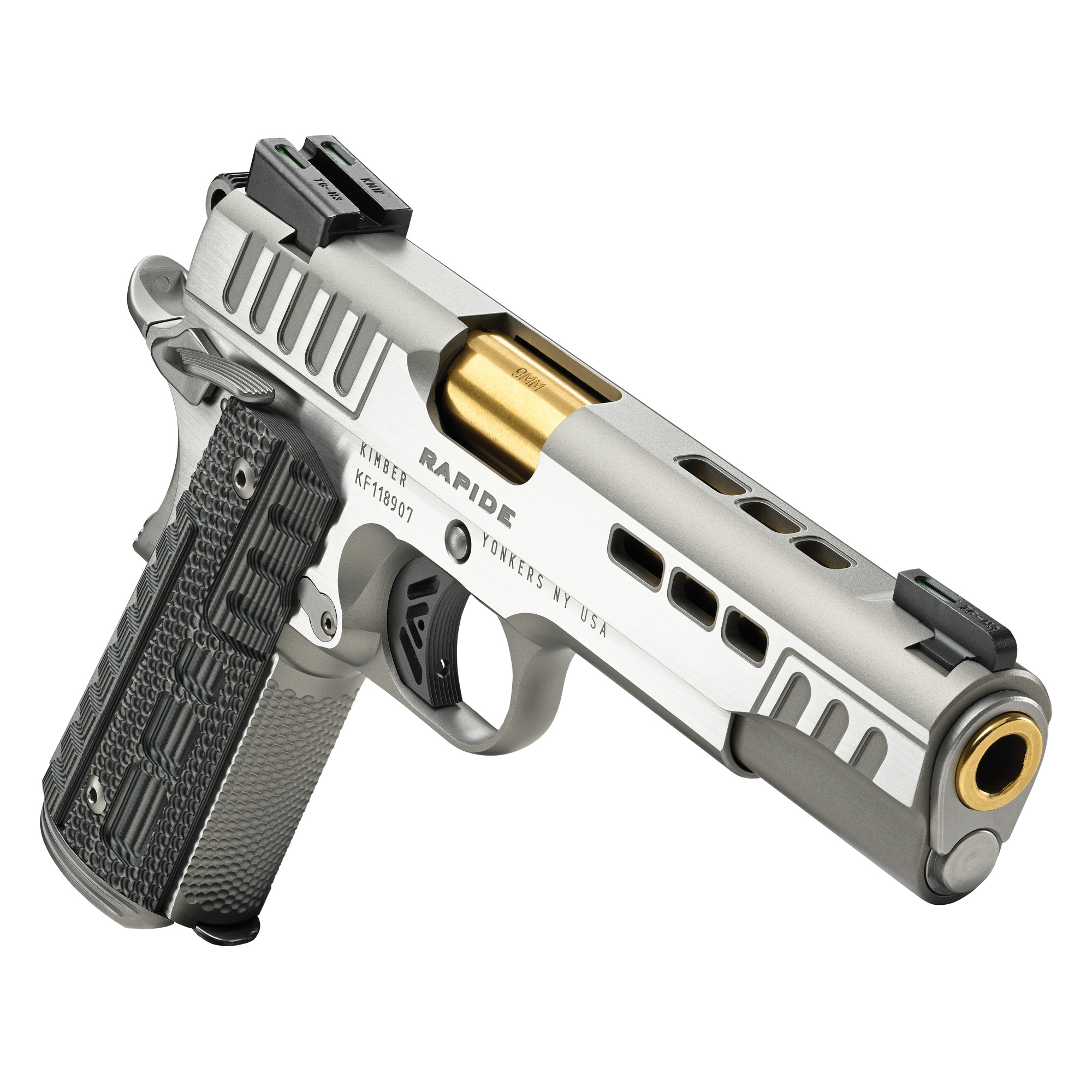 Kimber Mfg.,inc 3000420 Rapide Dawn 9mm Luger 9+1 5” Gold TiN Stainless Steel Barrel, Lightening Cut/Serrated Stainless Steel Slide, Stainless Steel Frame w/Beavertail, Black & Gray G10 Grip