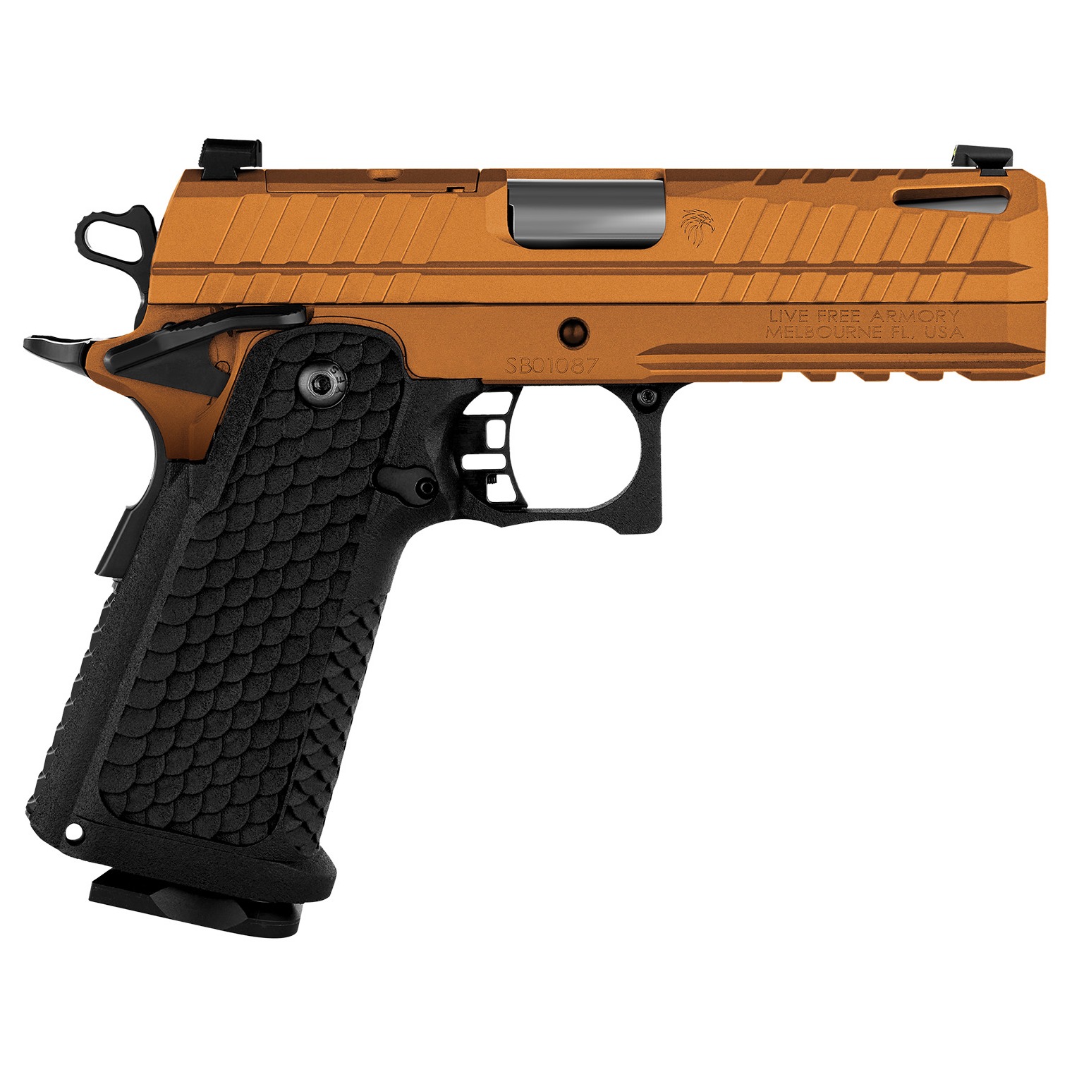 The Apollo 11 Compact 9mm pistol offers the same exceptional blend of style and performance as its full-size counterpart, tailored for those seeking a more compact and maneuverable firearm. The pistol features a 4.15” barrel; double-stack magazine; heat-treated 416 stainless steel slide and a durable 4140 steel frame; left-hand 1:16 rifling; ergonomic grip texture; RMSc optic cut and accessory rails.