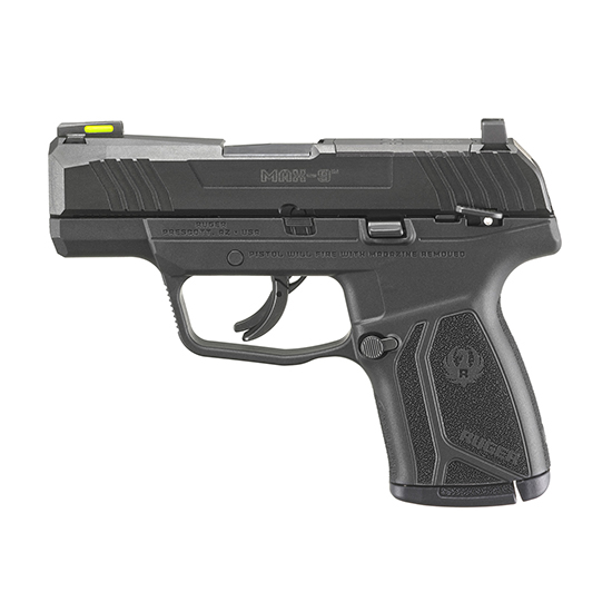 The Ruger Max-9 is slim, lightweight and compact for personal protection. It’s striker-fired with a short, smooth trigger pull, clean break and positive reset. It also features rugged construction with through-hardened alloy steel slide; one-piece, precision-machined fire control chassis; and high-performance, glass-filled nylon grip frame. The slide is optic ready for direct mounting of co-witnessed JPoint and Shield-pattern micro red dot sights. It utilizes tritium fiber optic day/night front sight for high visibility and drift adjustable rear sight. A cold hammer-forged barrel results in ultra-precise rifling that provides exceptional accuracy and longevity. Safety features include integrated trigger safety, manual safety, internal striker blocker and inspection port that allows for visual confirmation of a loaded or empty chamber. NOTE: JPoint & Shield-pattern micro red dots are NOT included.