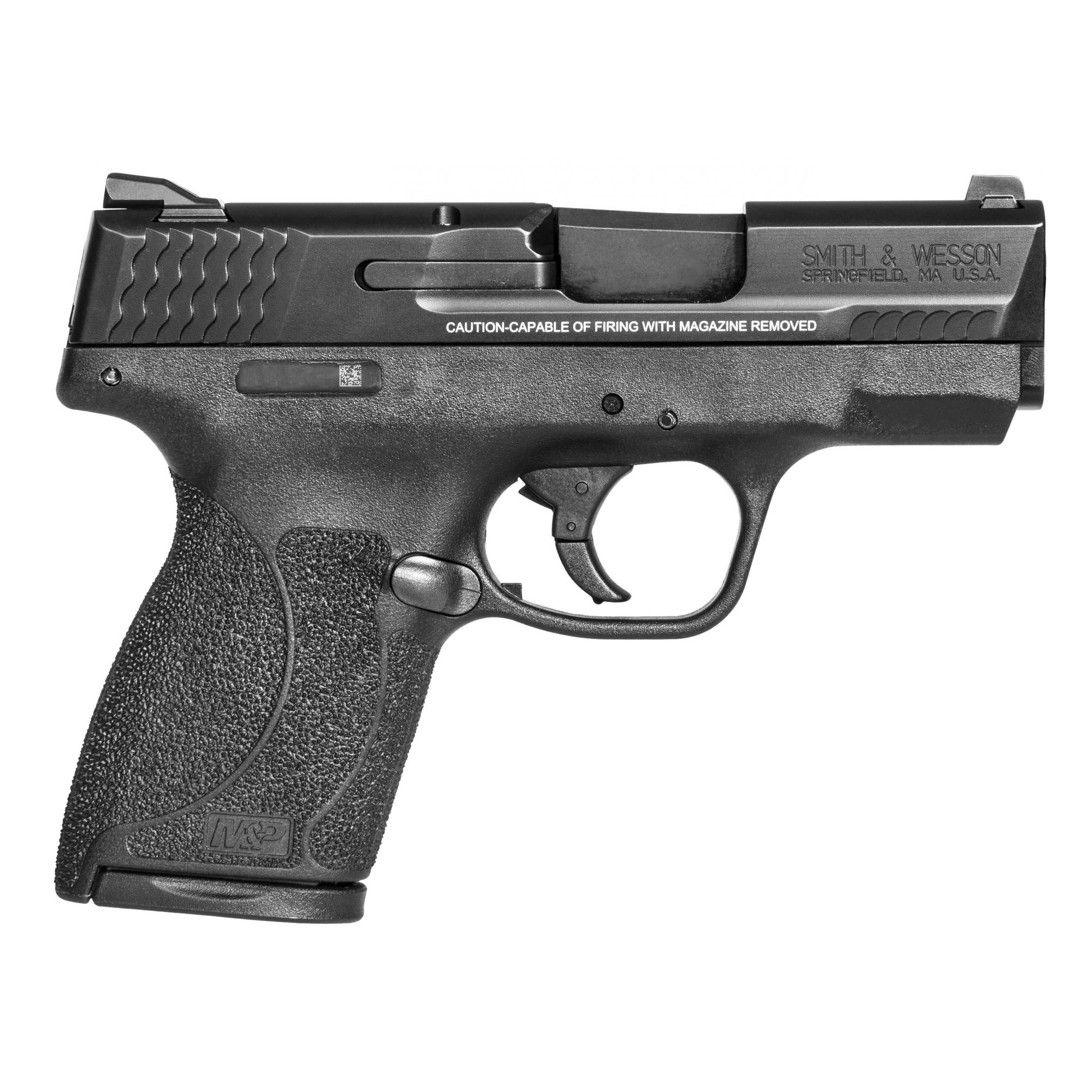 The S&W M&P has a reinforced polymer chassis, superior ergonomics, ambidextrous controls and proven safety features. In designing the M&P, Smith & Wesson considered the needs of military and law enforcement from every conceivable angle, so the M&P is the standard in reliability when your job is to serve and protect. The M&P Shield is slim, lightweight and easy to conceal. Includes two magazines.