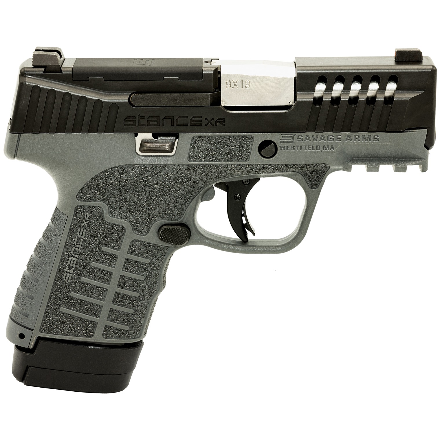 The Savage Stance XR Night Sights refines the micro pistol into a thin, easily concealable firearm that is built to be both functional in the hand as it is easy to conceal. With its aggressive surface textures, advanced slide serrations and ergonomic grip, Stance XR is designed to be comfortable when holstered and formidable when it needs to be. The Quick Release Optics (QRO) plate makes installing and removing optics simple and quick. Includes hard case, two interchangeable backstraps, one 10rd and one 13rd extended magazine.