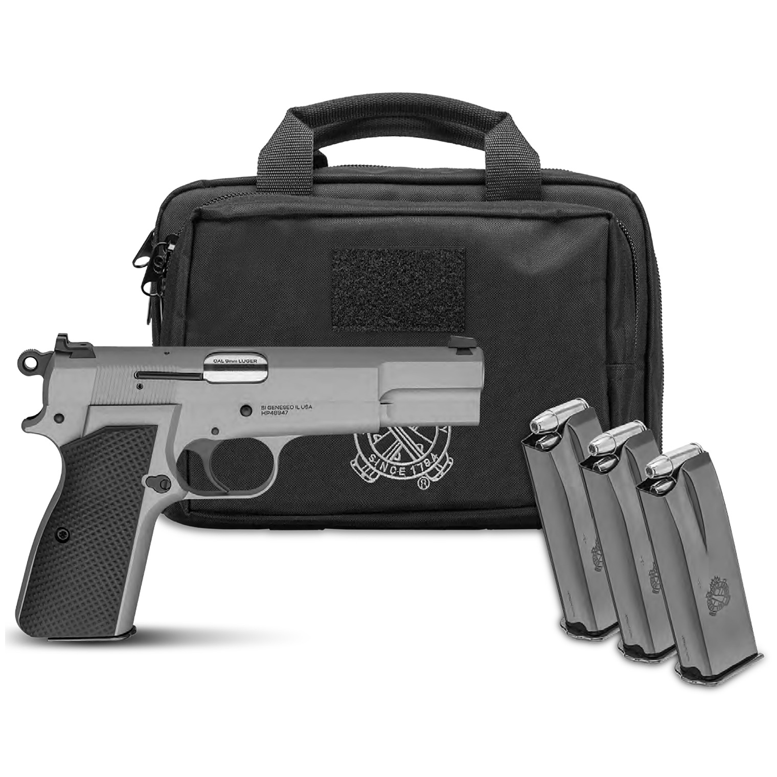 The Springfield Armory SA-35 gives todays shooters a modern take on a revered classic. Featuring subtle but significant upgrades to John Moses Browning’s original P-35 design. The SA-35 features rugged forged steel parts for strength and durability, G10 grips, improved ergonomics and enhanced controls, a factory tuned trigger, modern sights, an improved feed ramp design and an increased 15rd capacity. Gear Up package includes four magazines and soft pistol case.