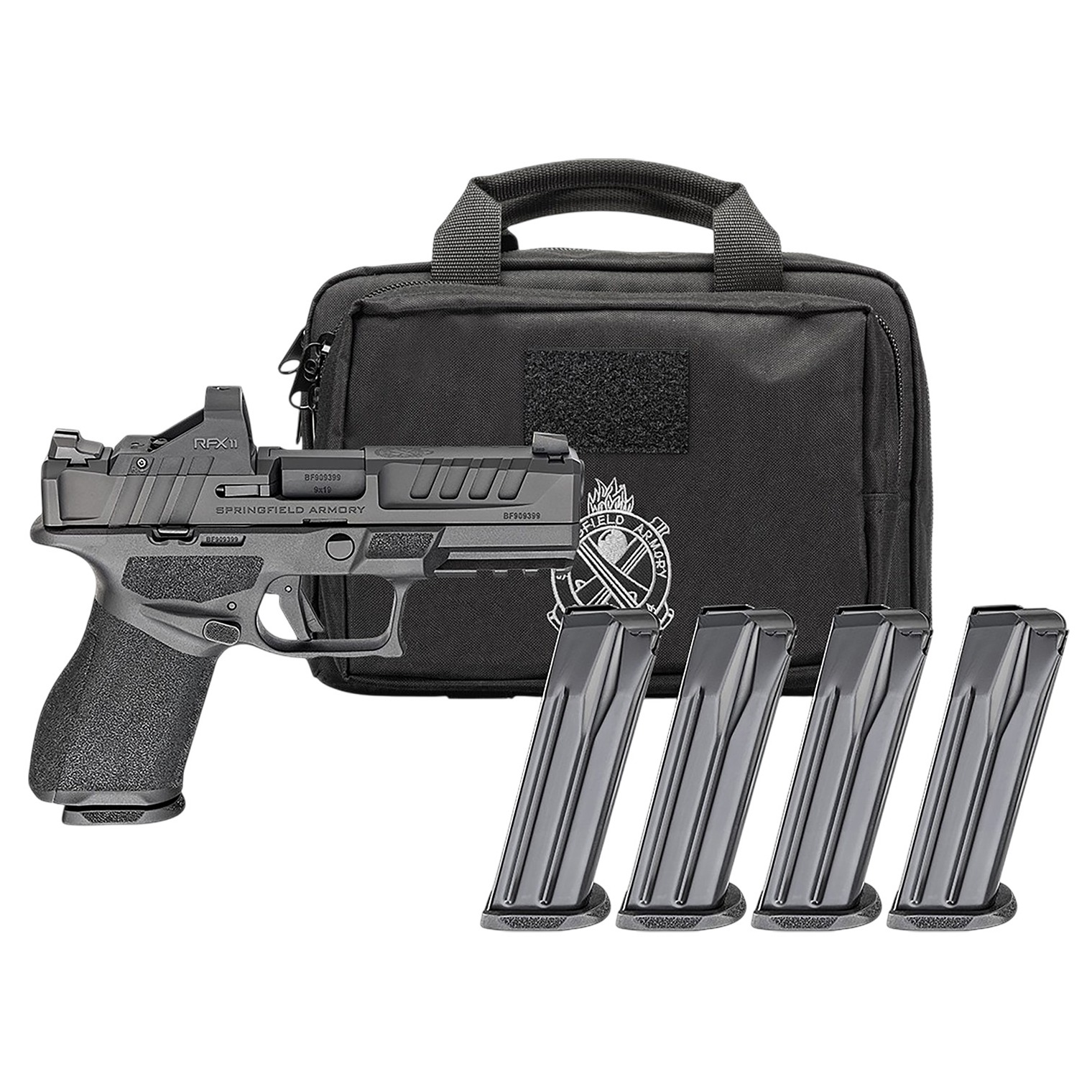 The Echelon California complaint Comp combine the proven performance and modular design of the Echelon series with the features required for California compliance, including a loaded chamber indicator, magazine disconnect and 10rd magazine capacity. Each delivers the same precision engineering, adaptability and modern performance shooters expect from the Echelon lineup. The Gear Pac pkg includes four magazines, a Viridian RFX-11 green dot optic and a pistol bag.