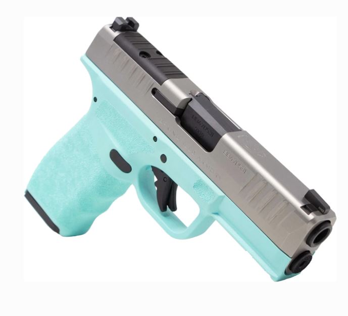 Designed around a flush fitting 15-round magazine the Davidson’s Exclusive Hellcat® Pro offers the perfect balance between concealability and capacity. Featuring a bold Robin’s Egg Blue frame and stainless steel slide, the pistol is chambered in 9mm and ships with one 15-round magazine and one 17-round magazine giving shooters the ability to carry in their preferred configuration. Optics ready and equipped with a versatile accessory rail, this pistol combines compact dimensions with the performance capabilities of a full-sized pistol.