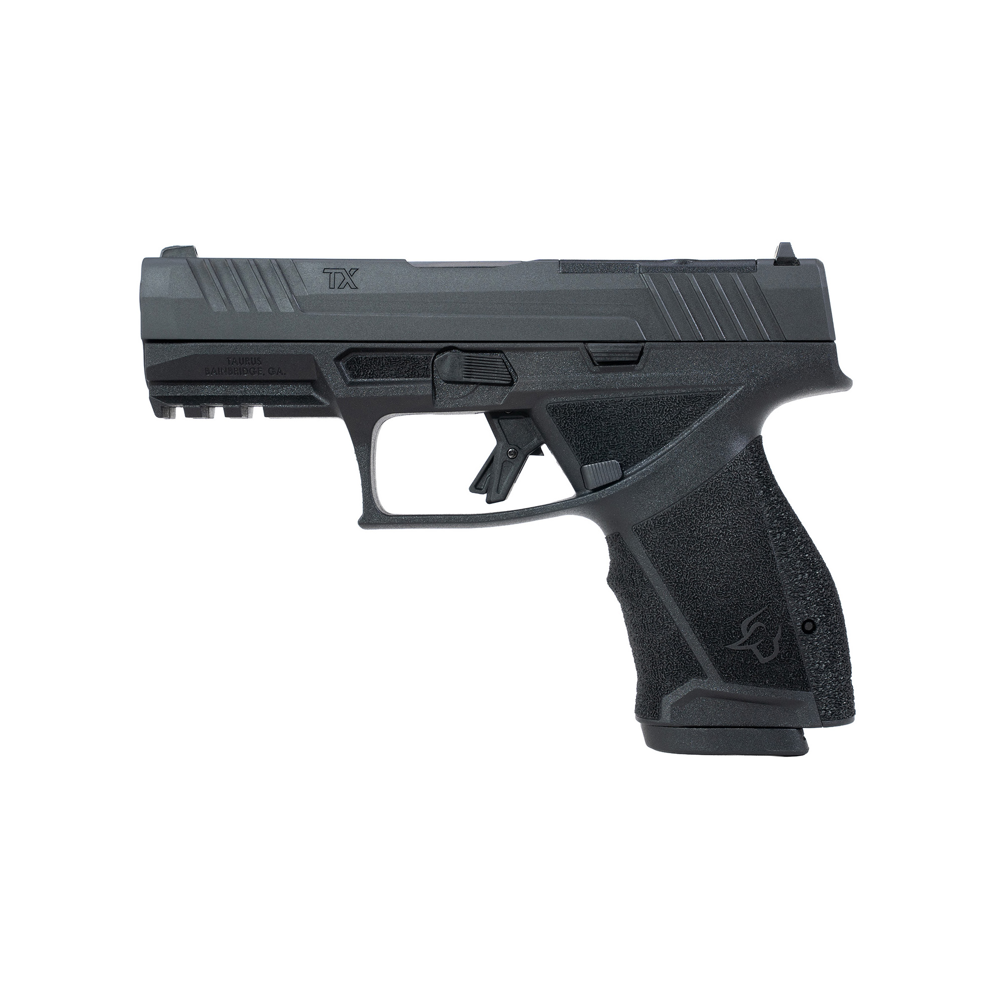 Taurus USA, TX9, Striker Fired, Single Action Only, Semi-automatic, Compact, 9MM, 4” Barrel, Nitride Finish, Black, Drift Adjustable Rear Sight with Removable Front Sight, Optics Ready T.O.R.O. Slide, 10 Rounds, 2 Magazines