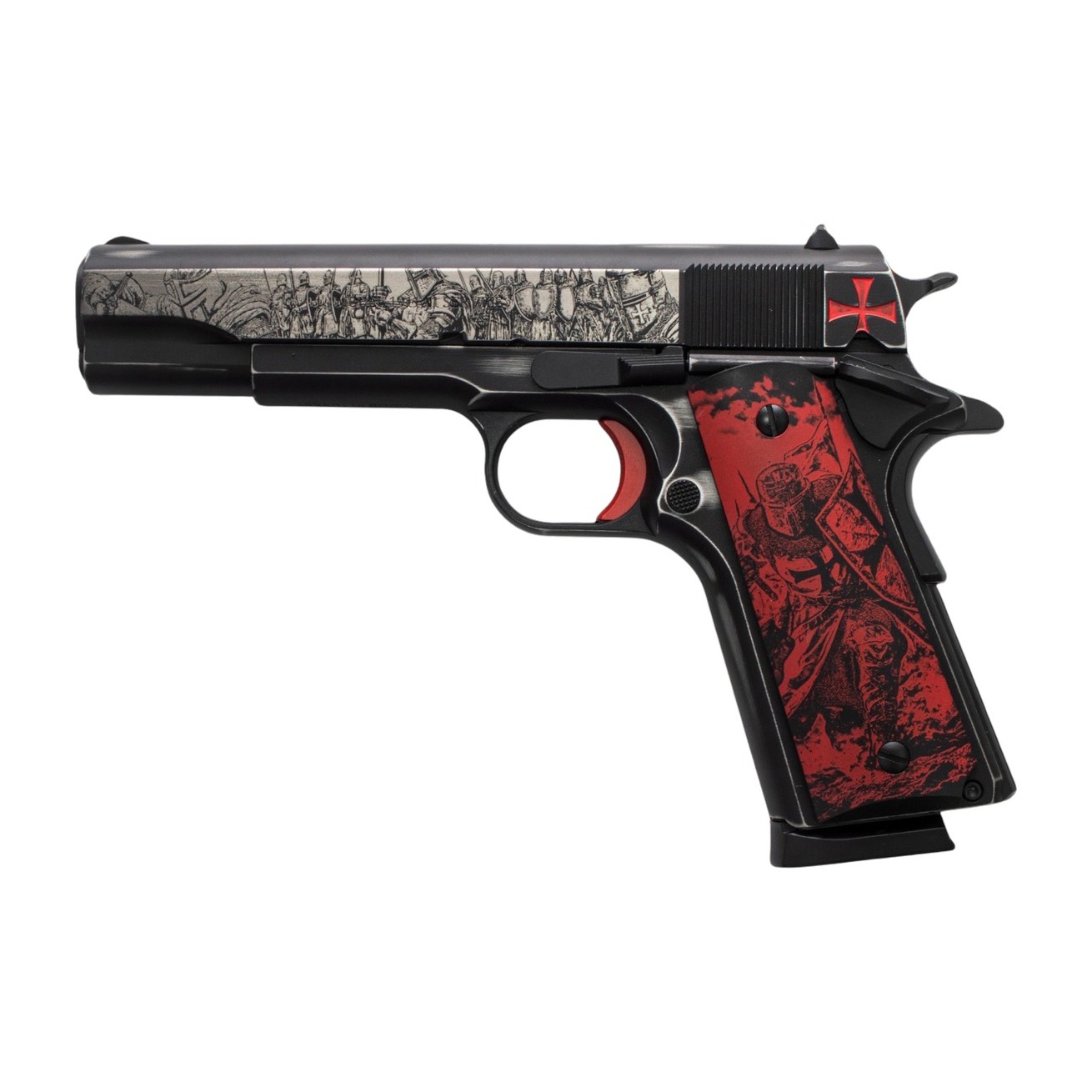 Tisas Arms 10100518AA2 1911 Crusader Full Size Frame 45 ACP 7+1 5” Steel Serrated Slide, Distressed Graphite Cerakote Carbon Steel Frame w/Beavertail, Multi-Color Cerakote Grip
