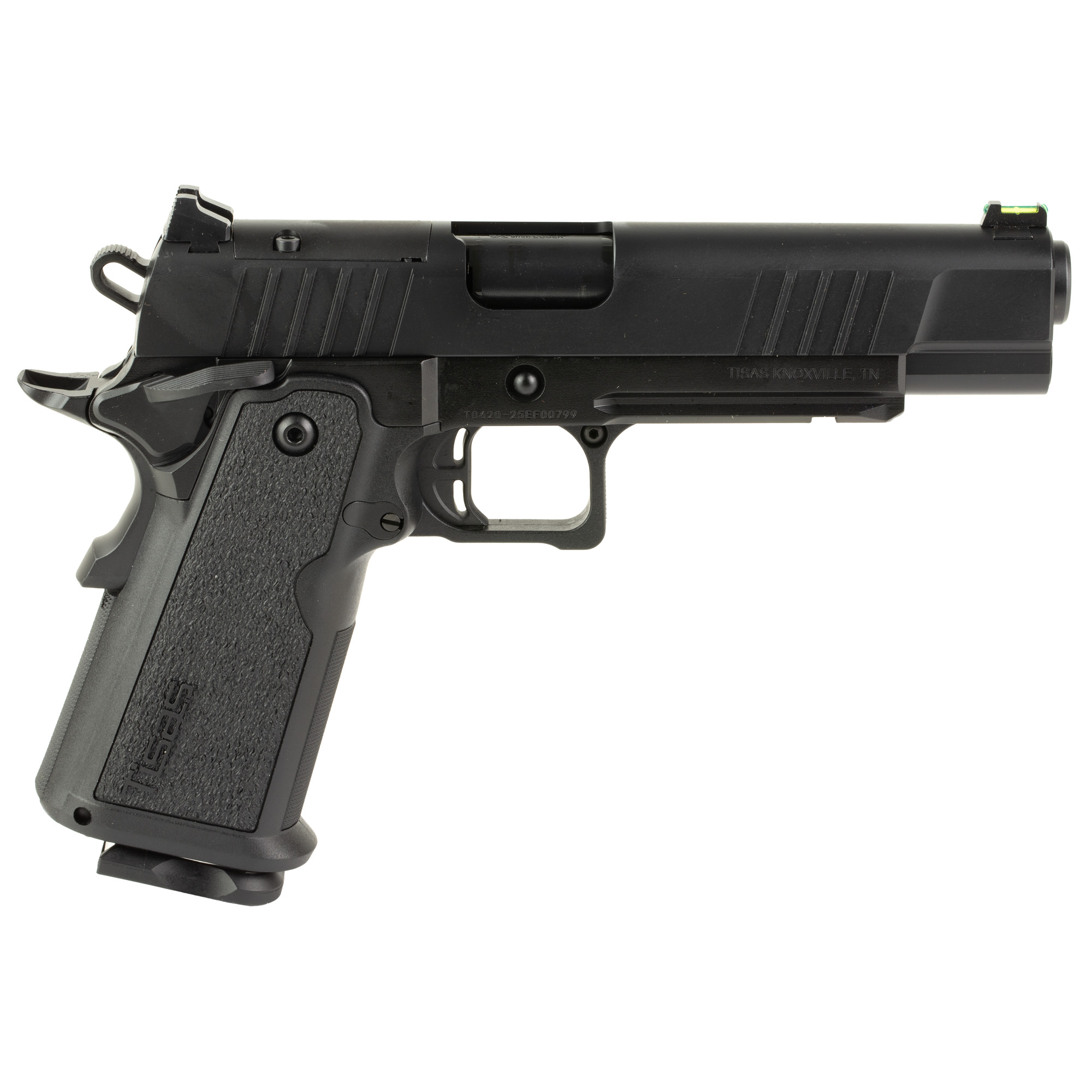 Tisas USA, Duty BR8 Double Stack, Single Action Only, Semi-automatic, Steel Frame Pistol, Full Size, 9MM, 5” Bull Barrel, Cerakote Finish, Black, Rail, Fiber Optic Front and Low Profile Combat Rear Sights, 17 Rounds, 2 Magazines