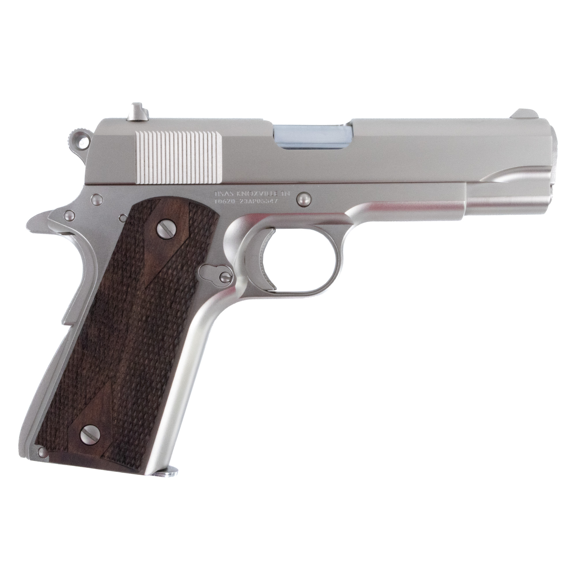 Tisas USA, 1911A1 Tank Commander, Semi-automatic, 1911, Metal Frame Pistol, Commander, 45ACP, 4.25” Barrel, Nickel Finish, Silver, Plastic Grips, Iron Sights, 7 Rounds, 2 Magazines