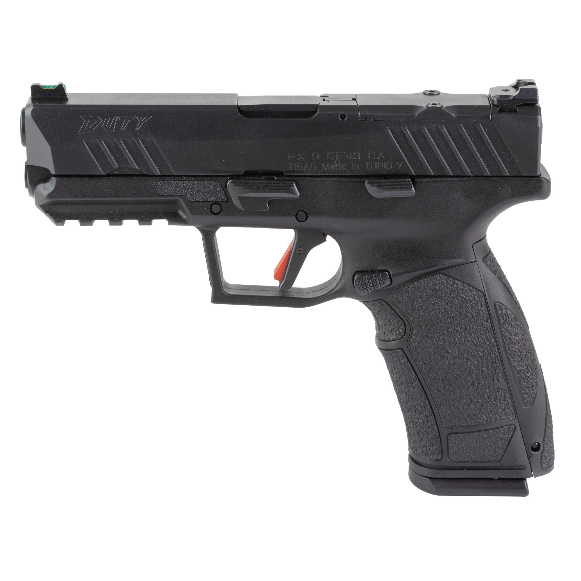 The PX-9D is the latest version of the popular striker-fired pistol in 9mm, using reliable P226 pattern magazines. Its ideal for duty or competition, with upgraded sights on a redesigned, lightweight slide for a more aggressive look. Features a magazine disconnect, loaded chamber indicator and RMR-pattern optic cut, allowing for co-witness with stock sights. With grip panels and back-straps, it offers superior ergonomics and sets a new standard for pistol features at any price point. Includes hard case, two magazines, cleaning kit and owner’s manual.