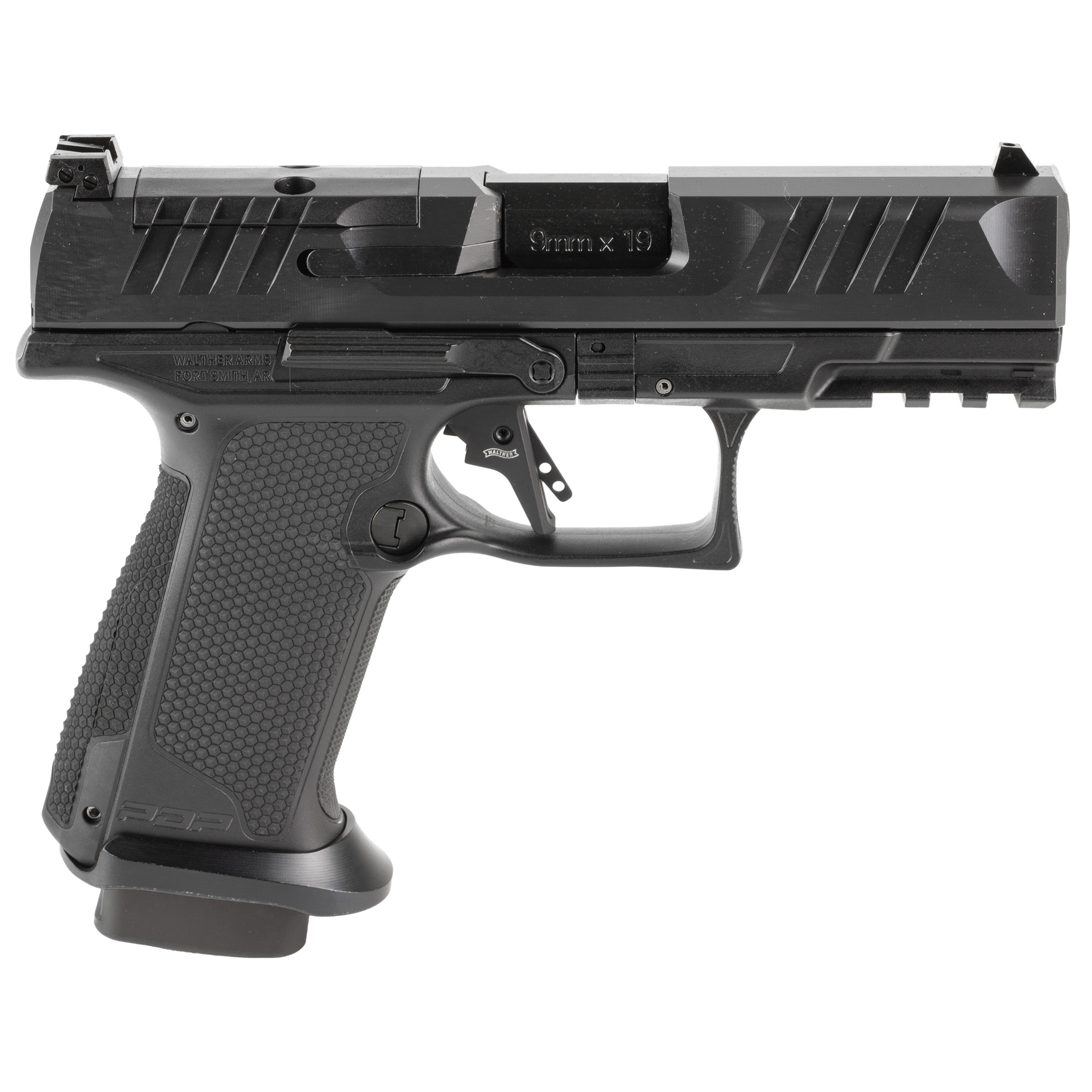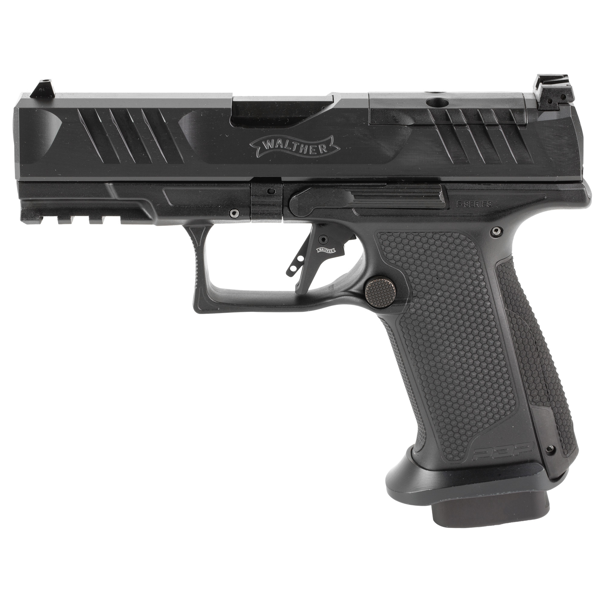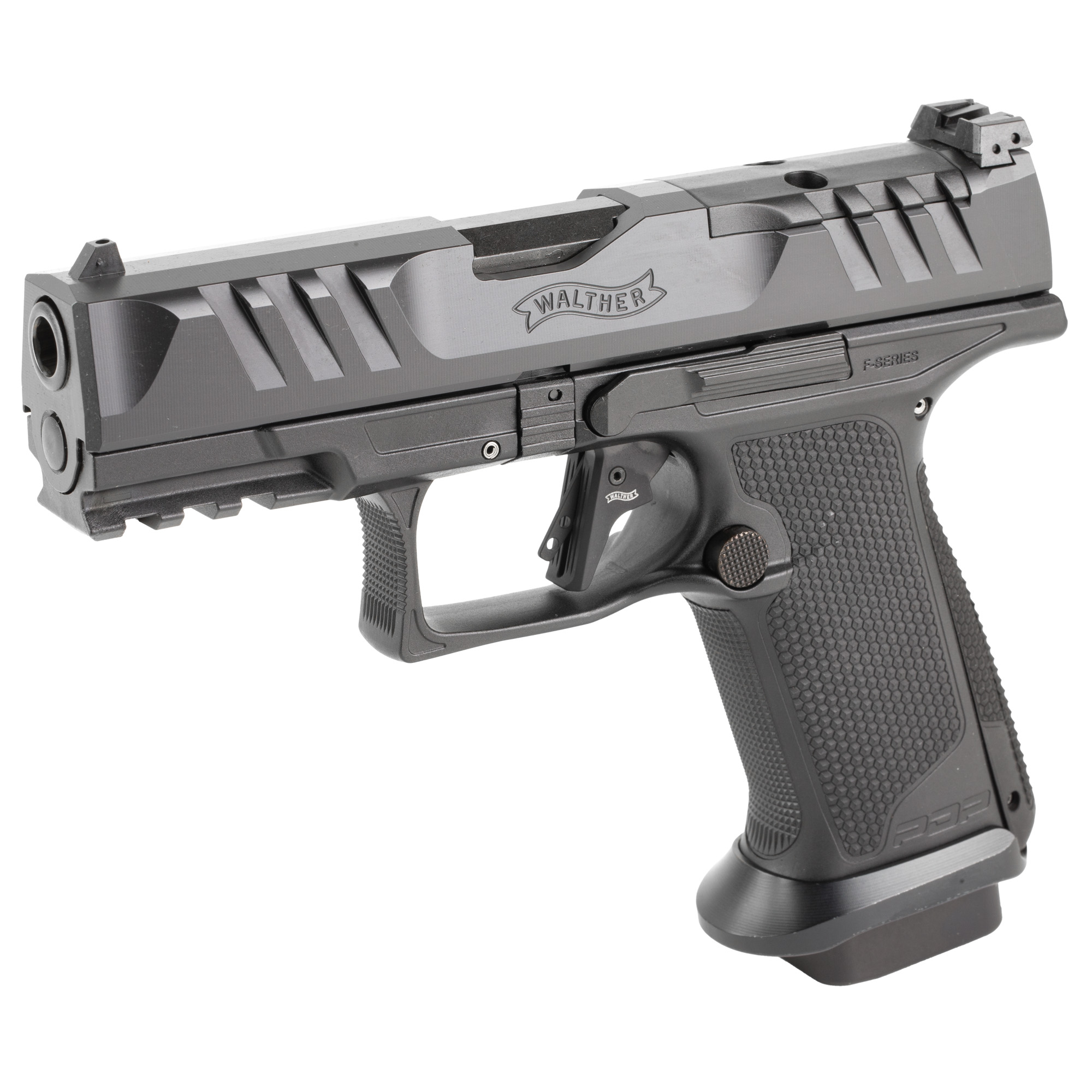 Elevate shooting experience with the Walther PDP F-Series Pro. Built with Walther’s hallmark TEQ (Trigger, Ergonomics and Quality) philosophy, the PDP F-Series Pro is the ultimate tool for precision, reliability, and control. The PFP F-Series Pro features an aluminum magwell, designed to enhance reload speed for faster transitions. Paired with extended magazine base pads. Includes three magazines.