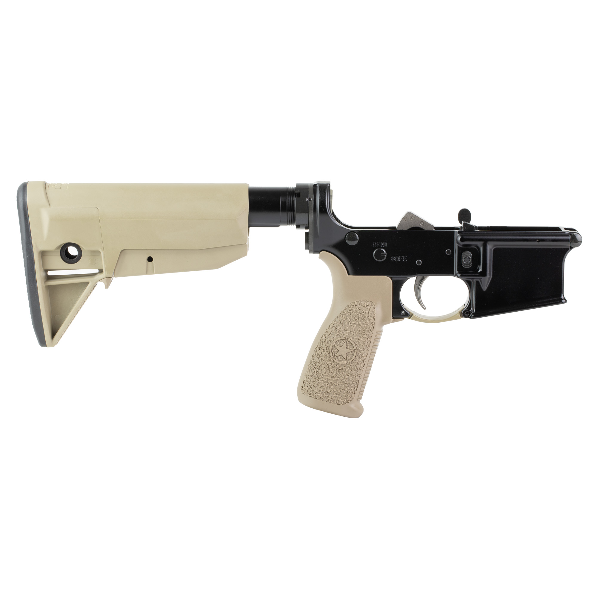 Bravo’s BMC Lower Receiver Group with Stock has a carbine h buffer type, a BCM Mod 3 pistol grip, and a BCM enhanced trigger guard. NOTE: Requires lower parts kit of your choosing to complete.